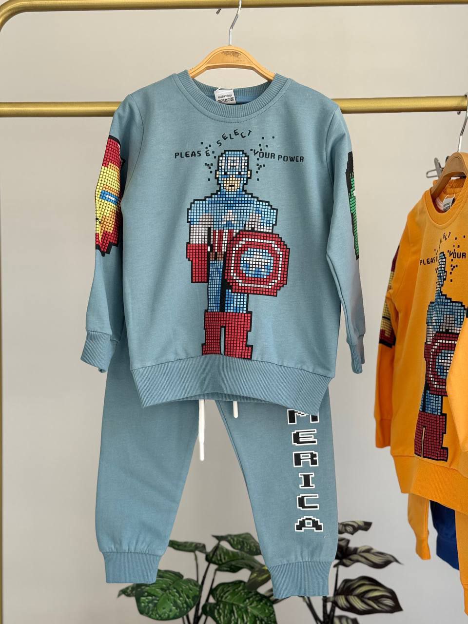 Bottoms: Matching joggers with Captain America and elastic waistband