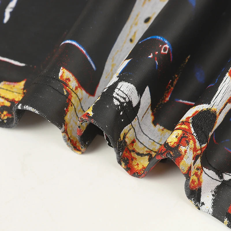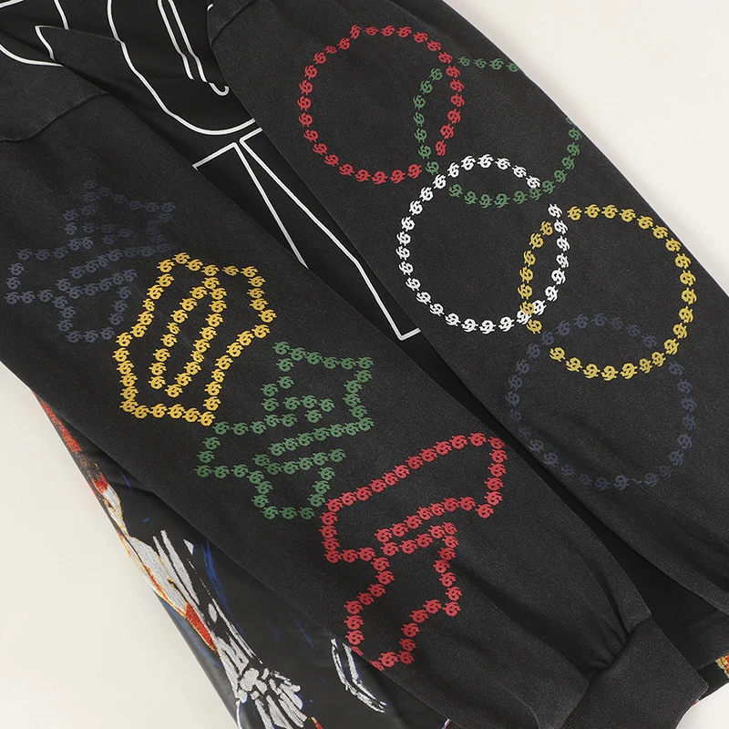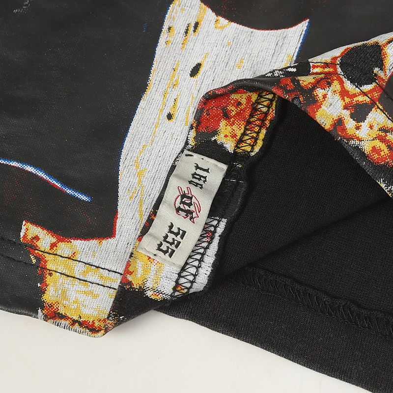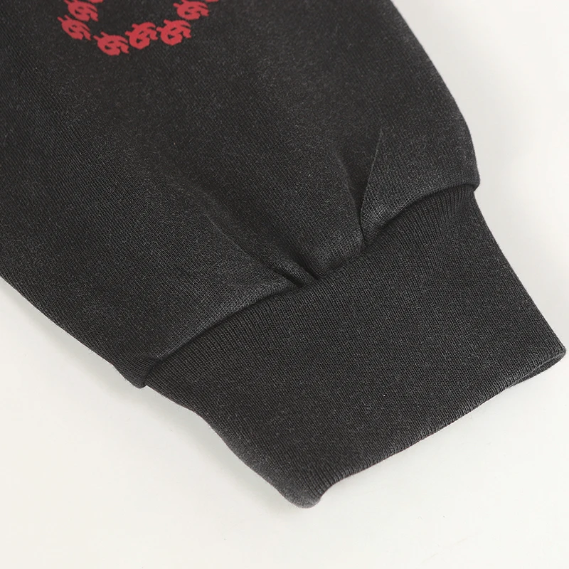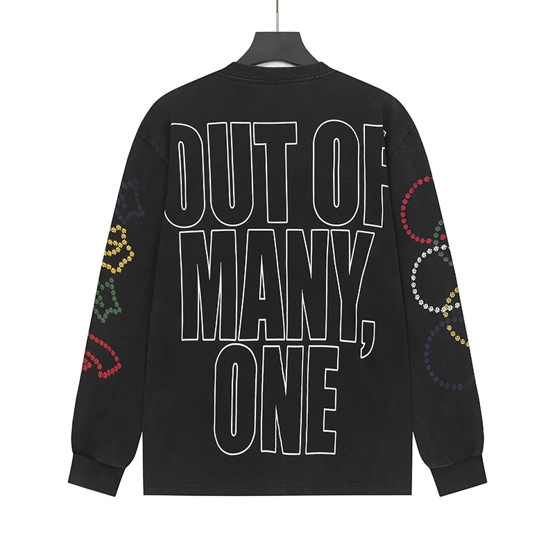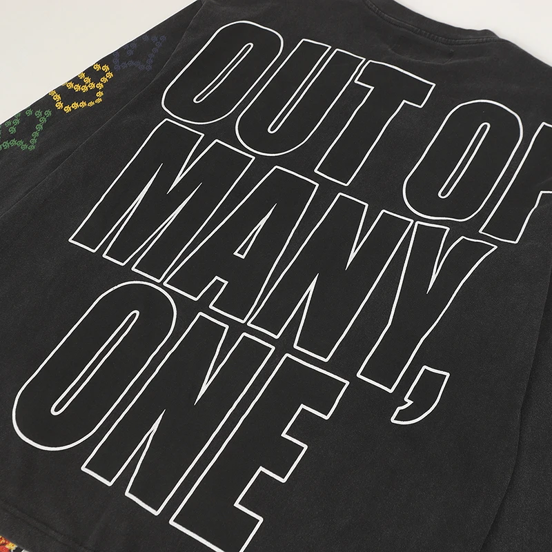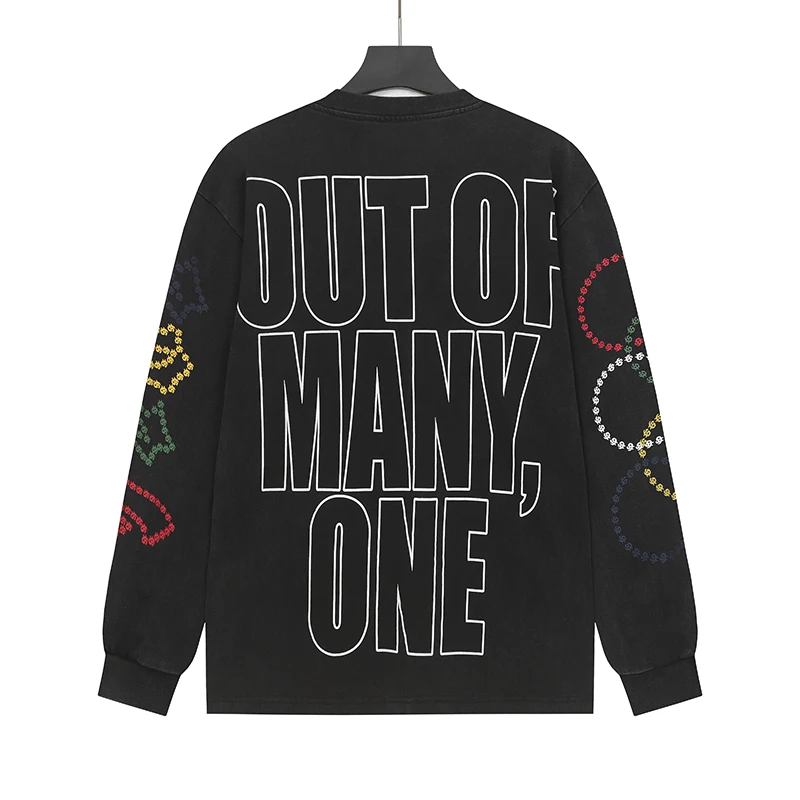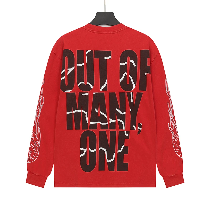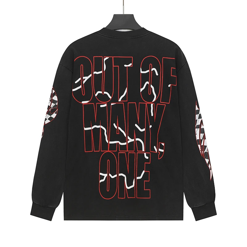 American Streetwear Godspeed Long Sleeve Graffiti Skeleton Print Casual Trend Washed 100% Cotton Round Neck T-Shirt