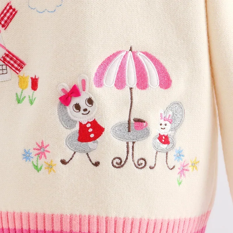 Girls' cartoon bunny garden sweater