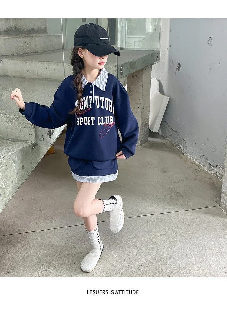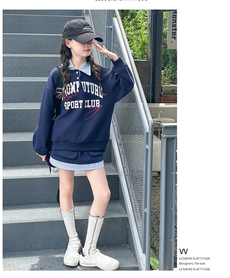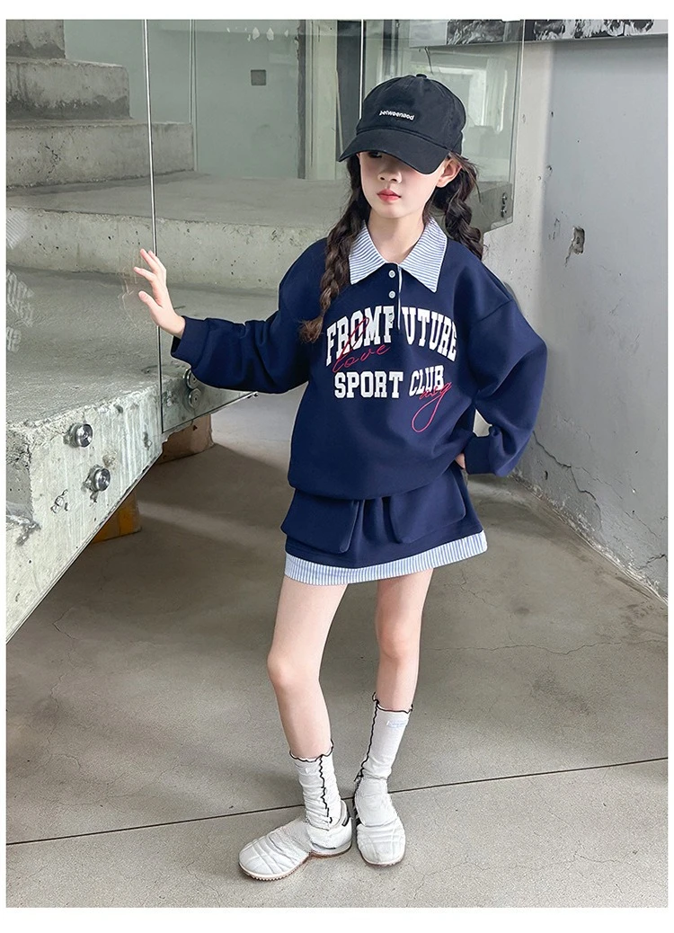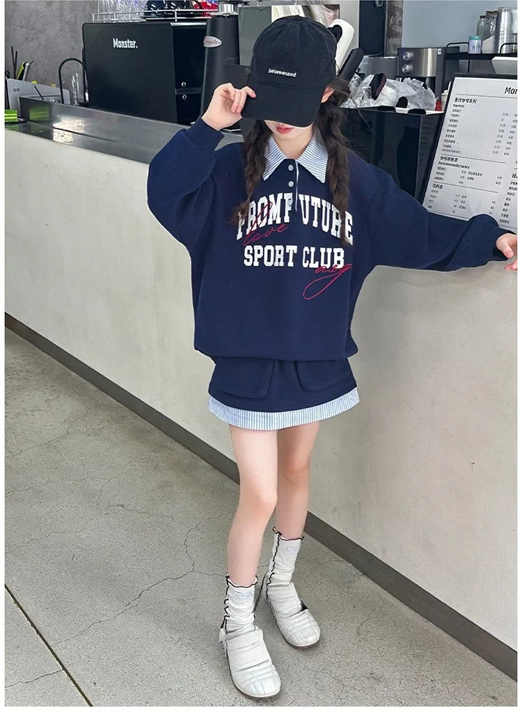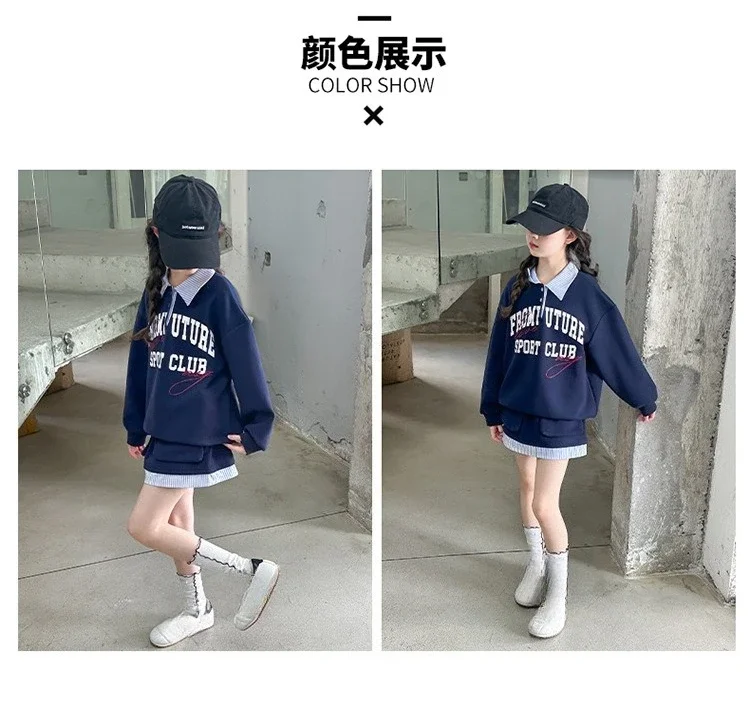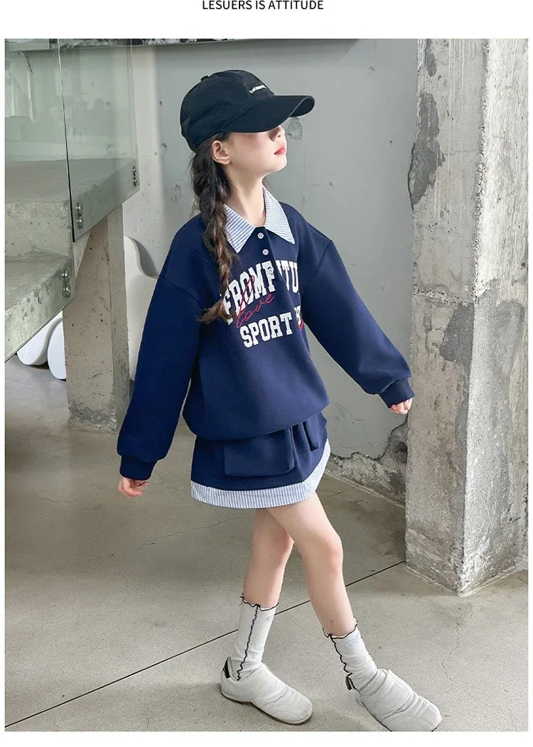 Autumn junior kid clothes suit plaid patchwork letter hoodie+skirt 2pc teen girl Skirts sets child outfits vetement enfant fille