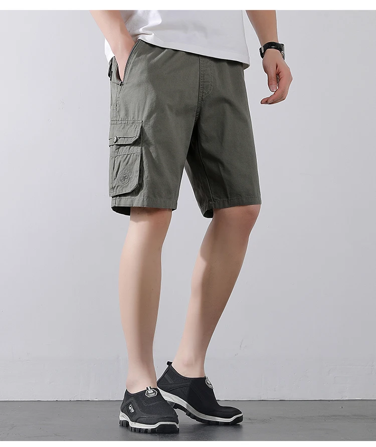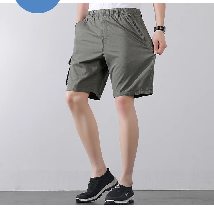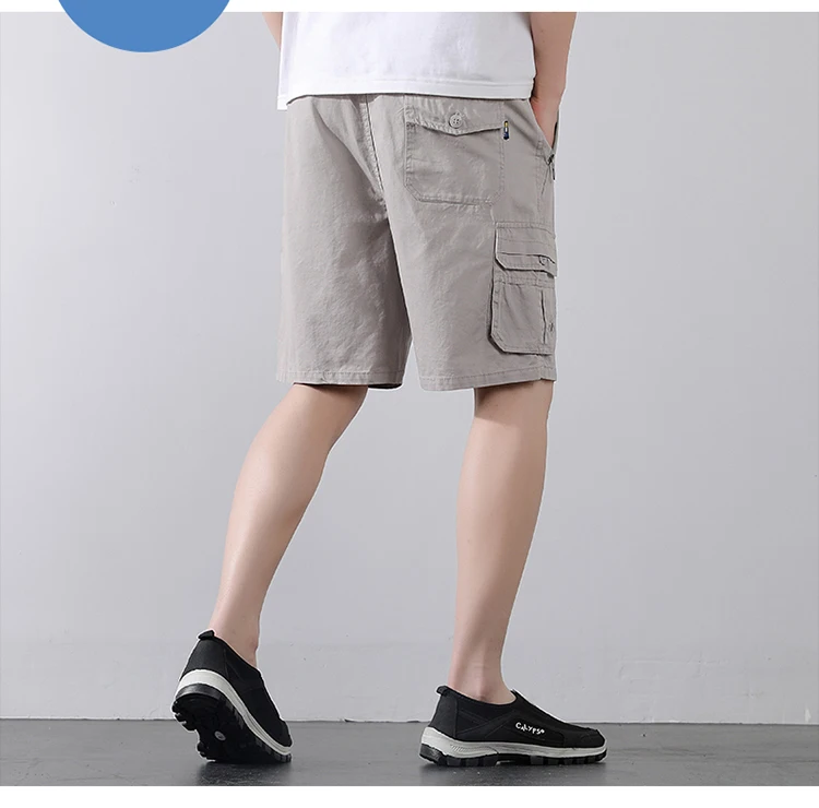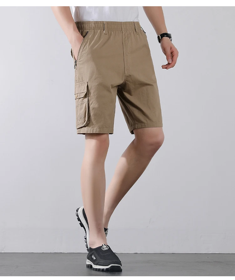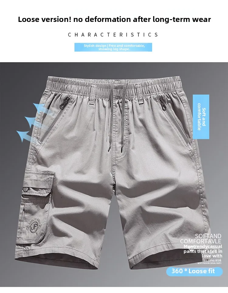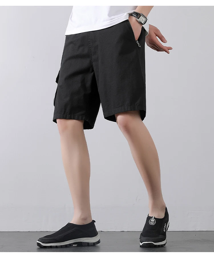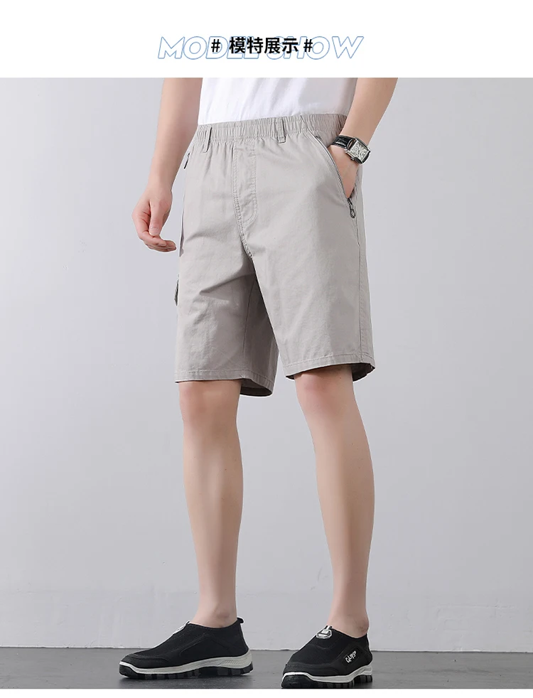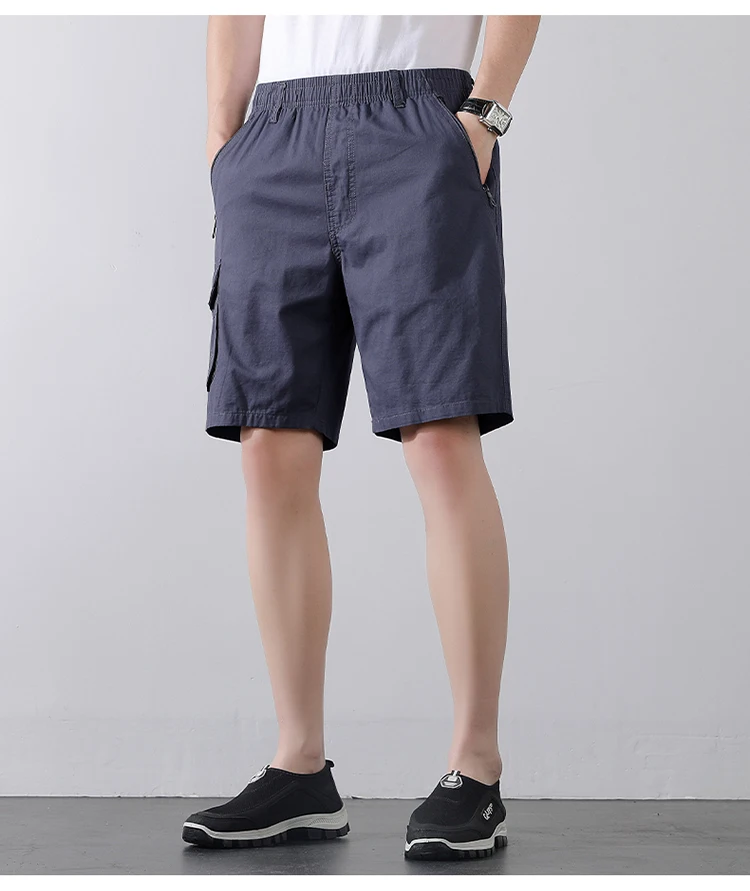 Cotton Cargo Shorts Men Summer Breathable Drawstring Short Pants Casual Loose Straight Work Shorts Elastic Waist Outdoor Shorts