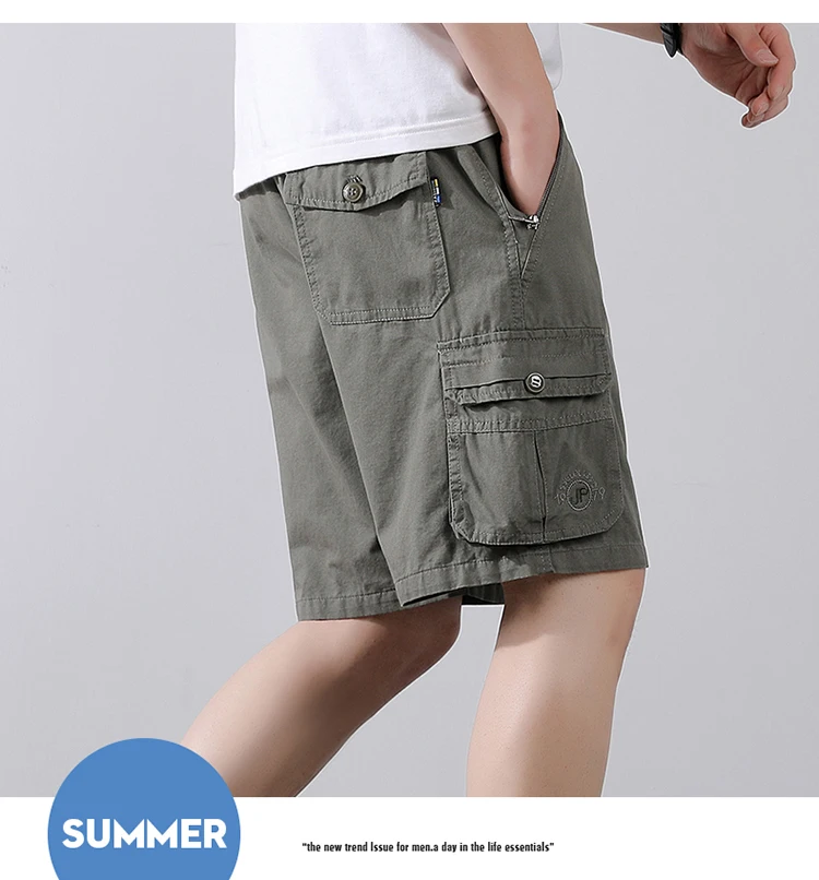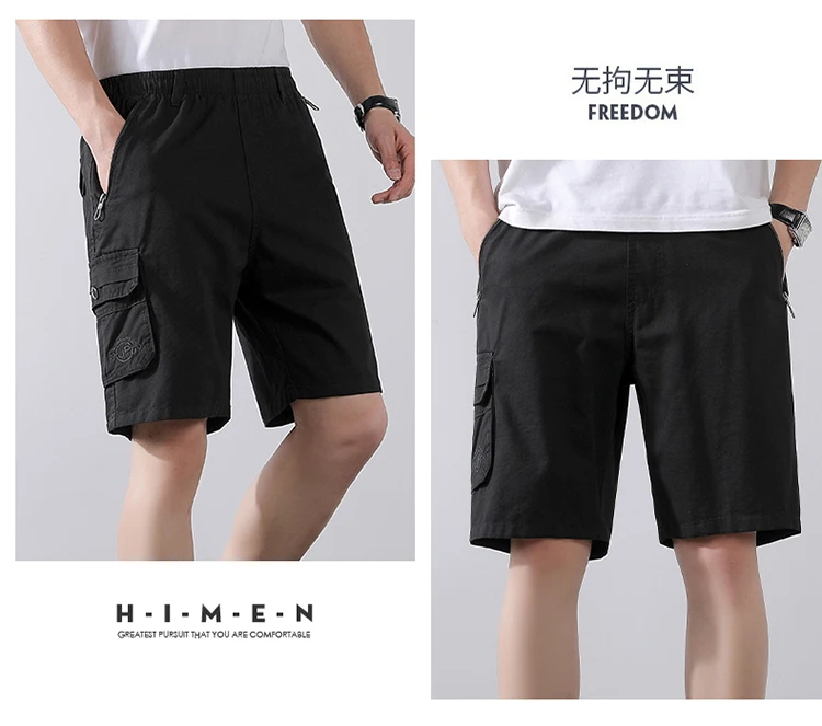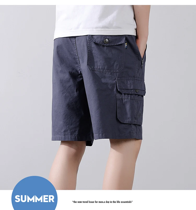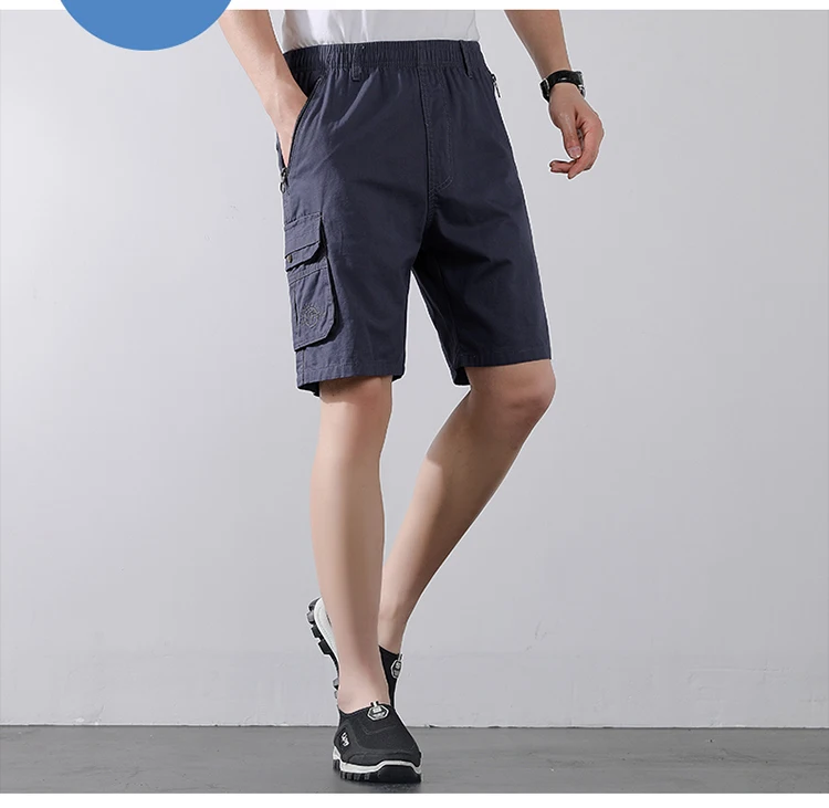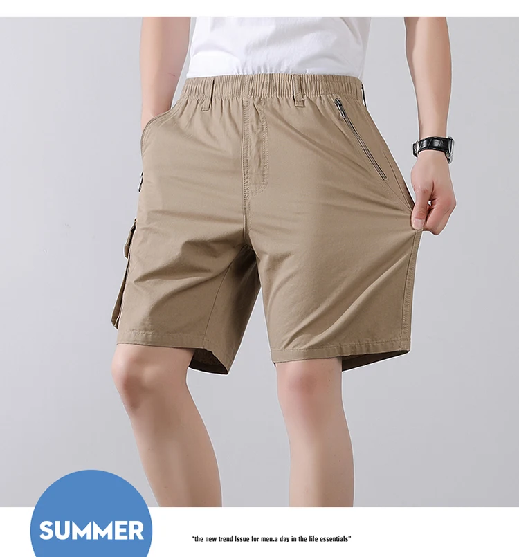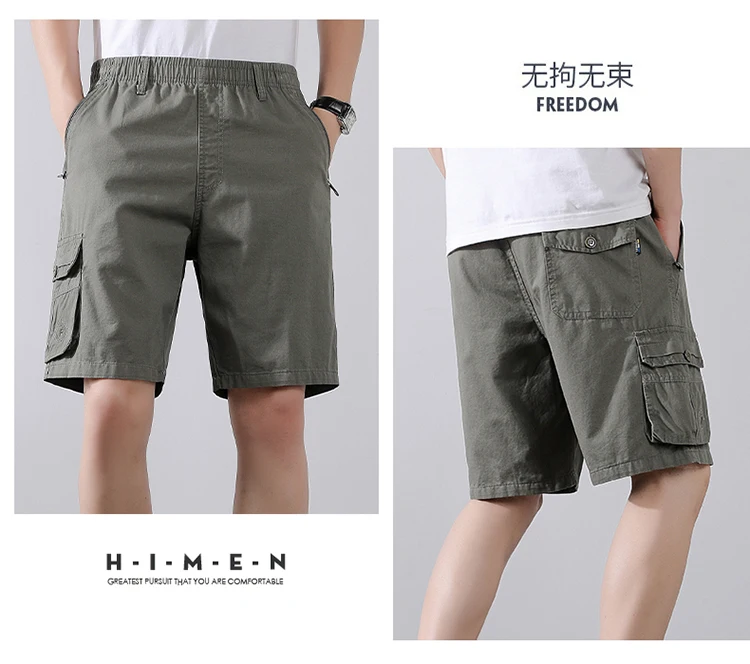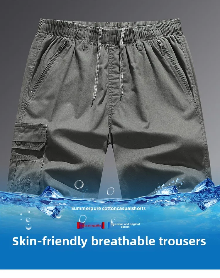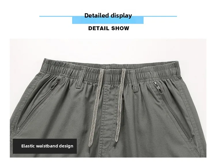 Cotton Cargo Shorts Men Summer Breathable Drawstring Short Pants Casual Loose Straight Work Shorts Elastic Waist Outdoor Shorts