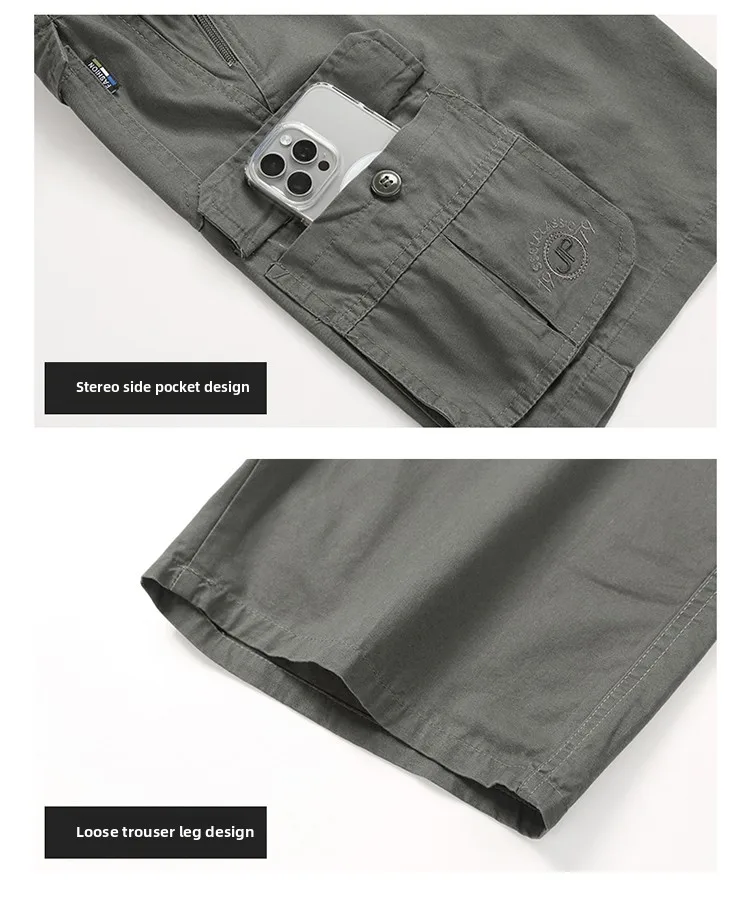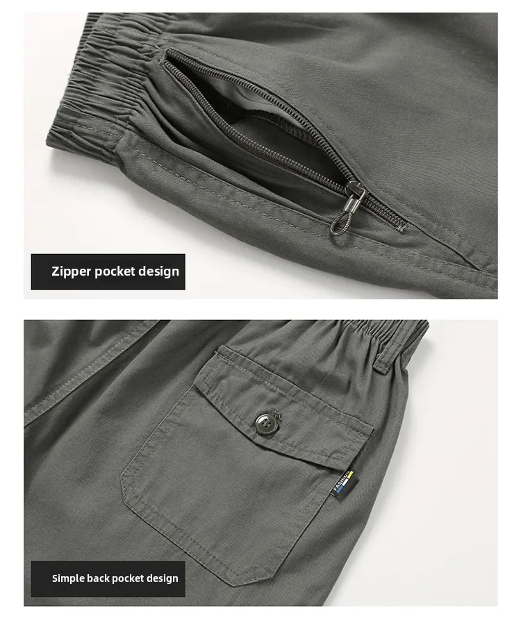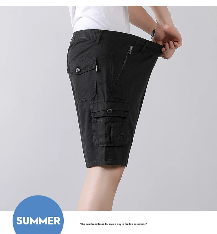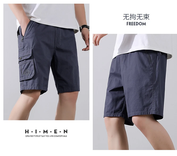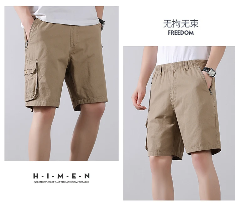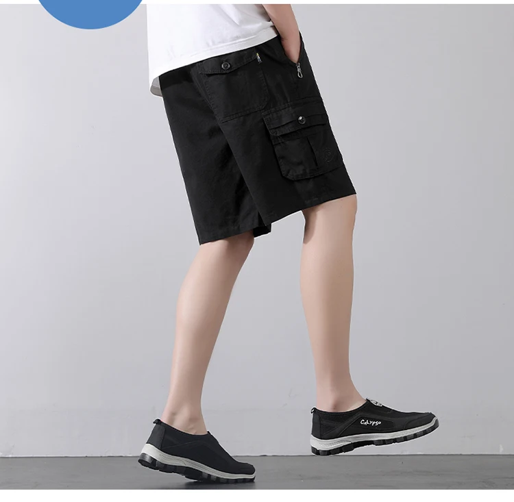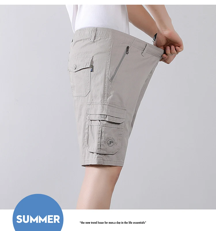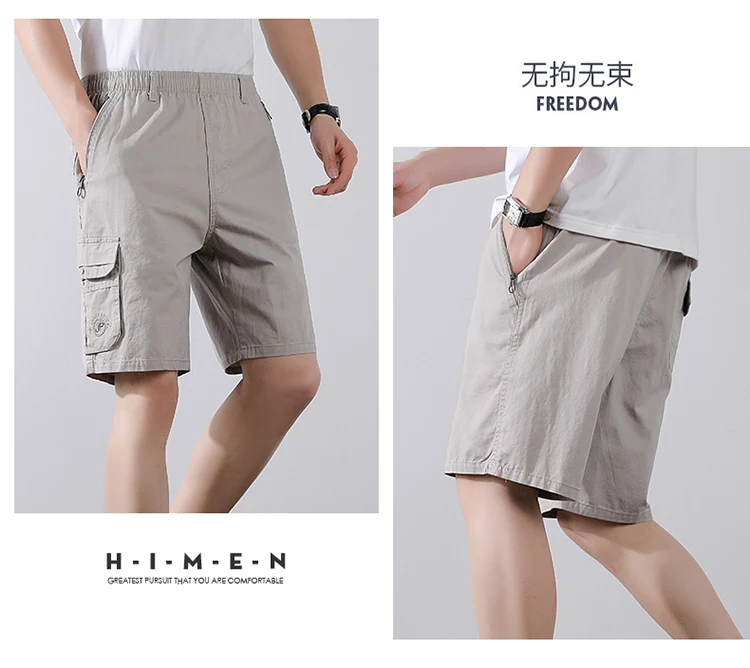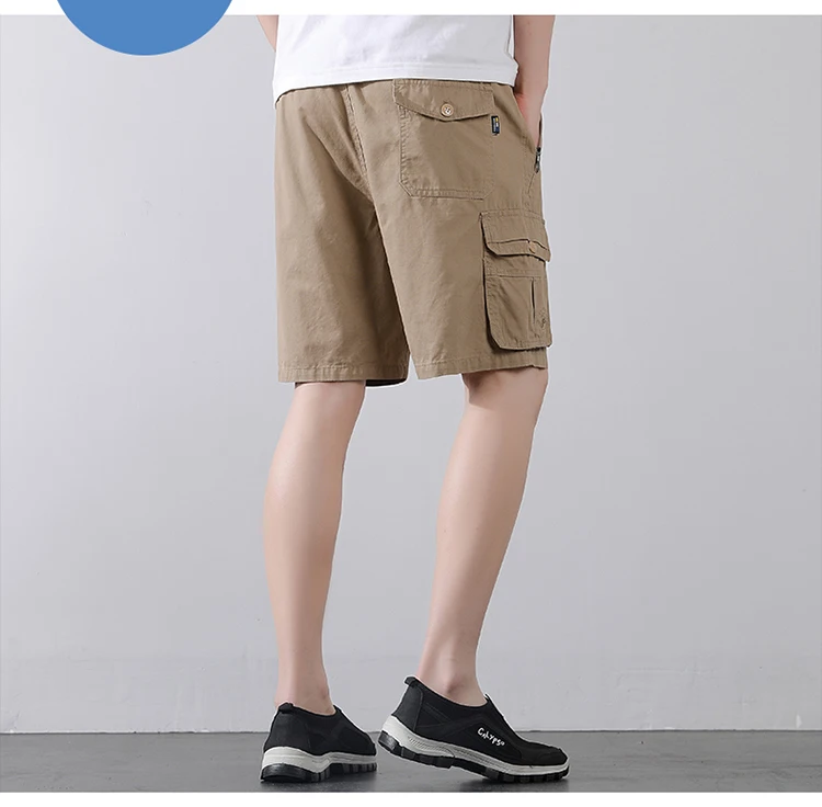 Cotton Cargo Shorts Men Summer Breathable Drawstring Short Pants Casual Loose Straight Work Shorts Elastic Waist Outdoor Shorts