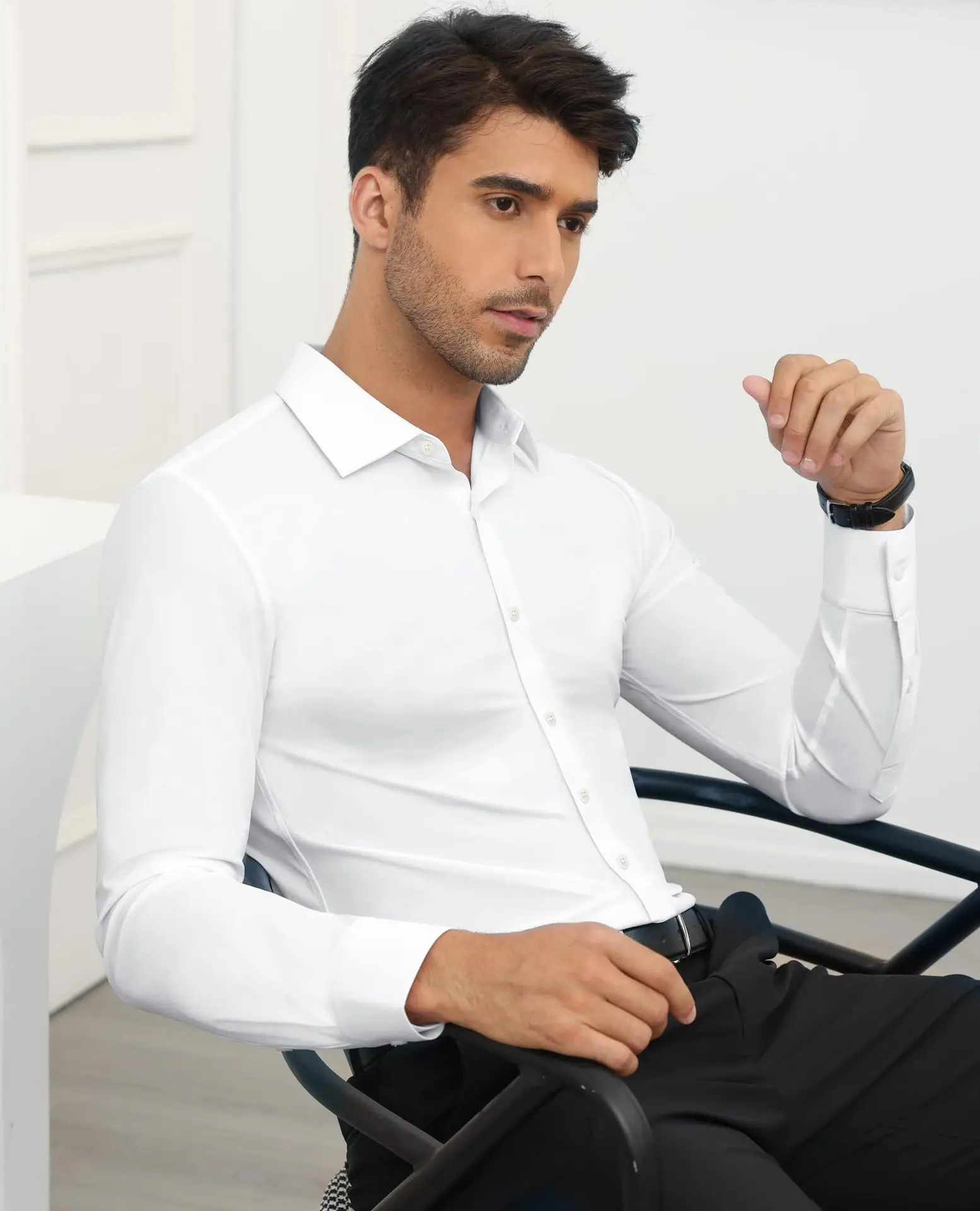Customized Embroidered Printed Elastic Men's Long Sleeved Shirt No Ironing Workwear Business Casual High-end Formal White Shirt