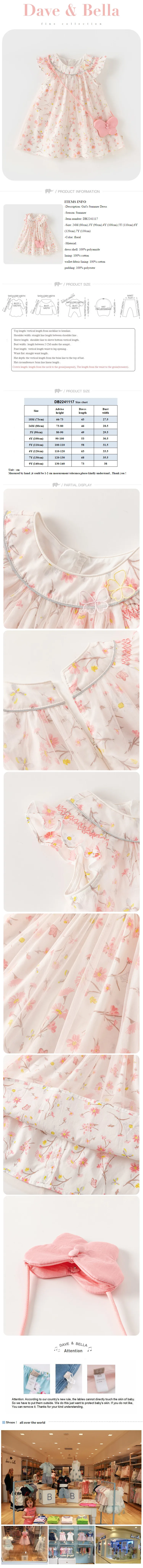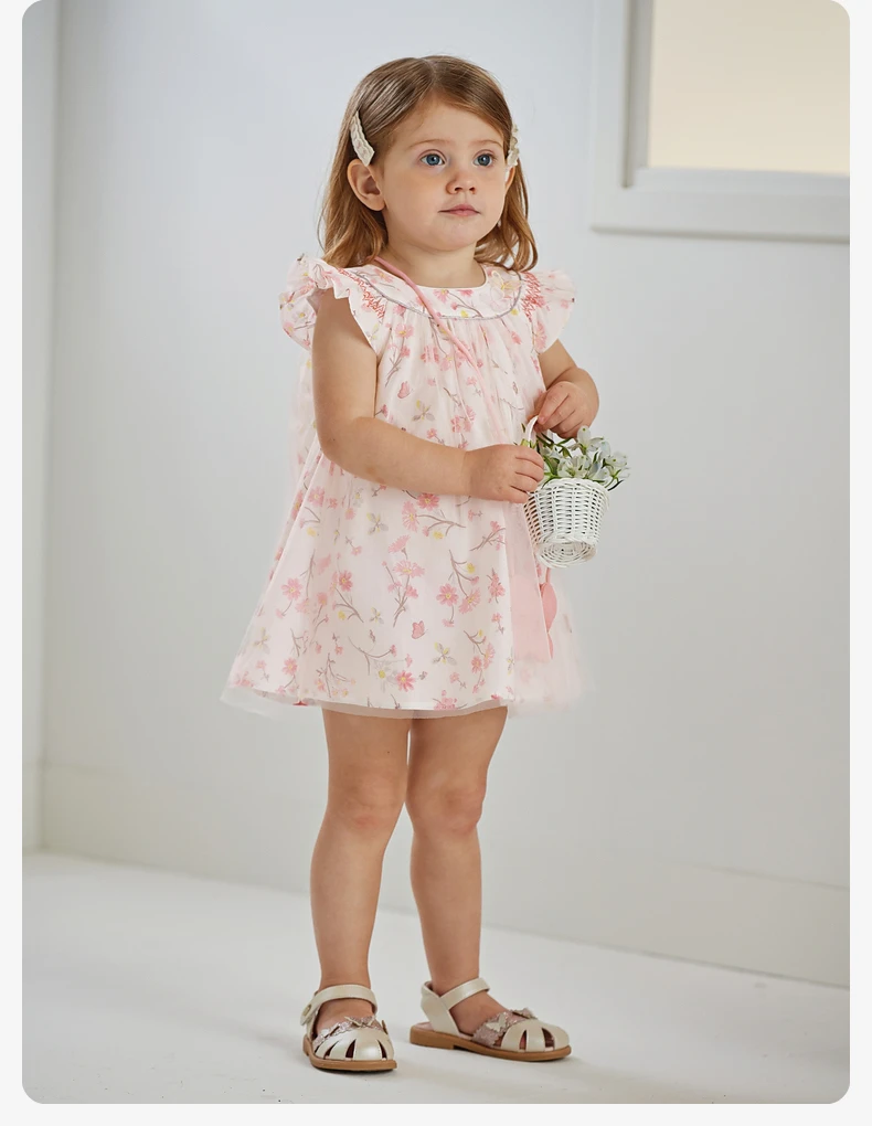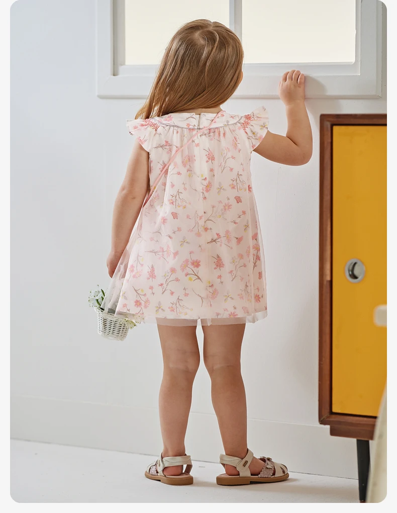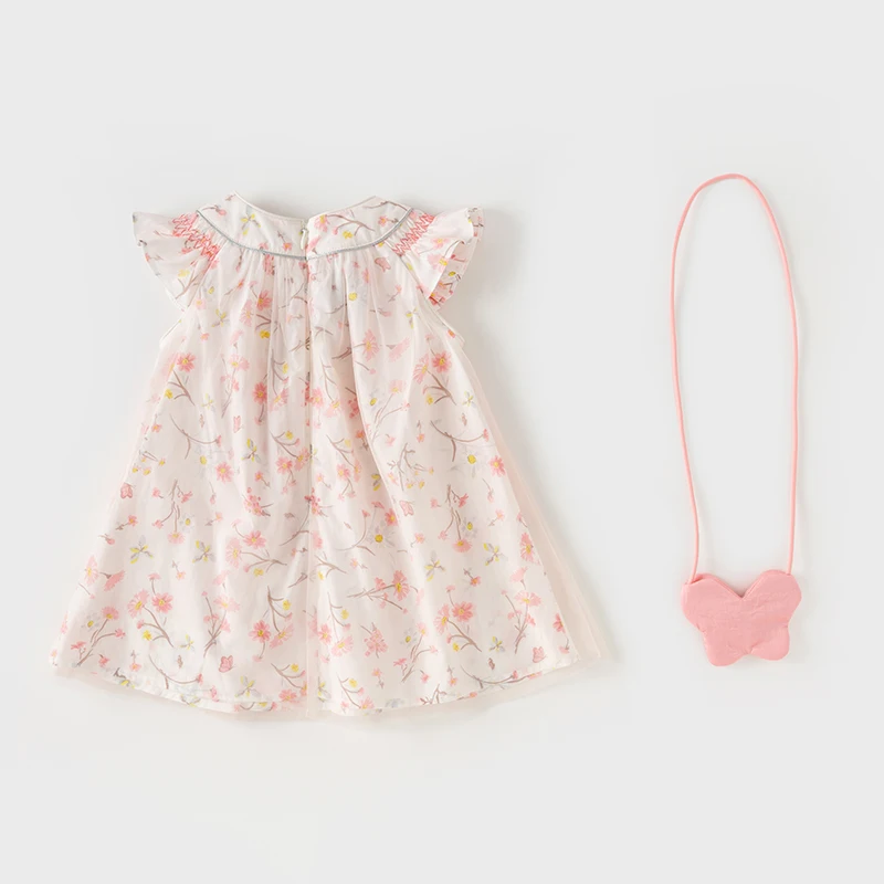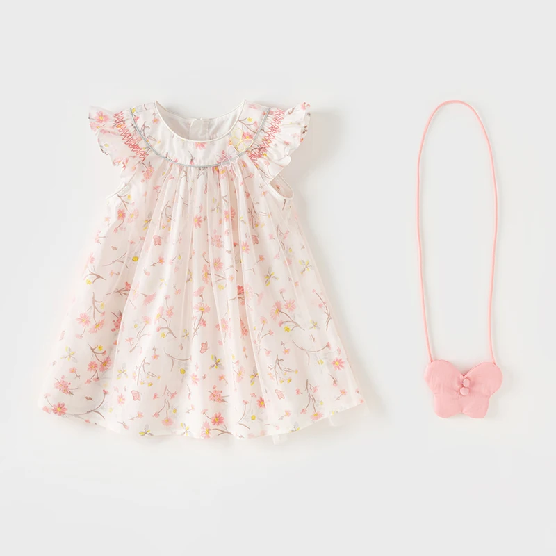 Dave Bella Girl's Dress 2025 New Summer Children Baby Princess Dress Butterfly Floral Mesh Gentle Sweet Sleeveless DB2241117