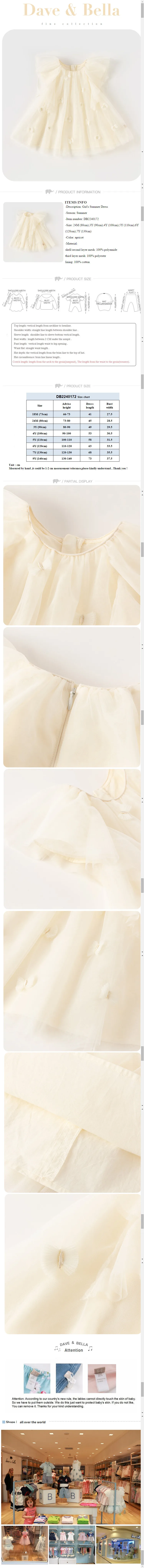 Dave Bella Girl's Princess Dress 2024 New Summer Children's Baby Mesh Noble Cute Sweet Charm Gentle Party DB2240172