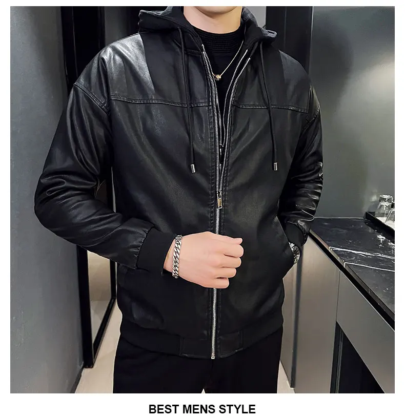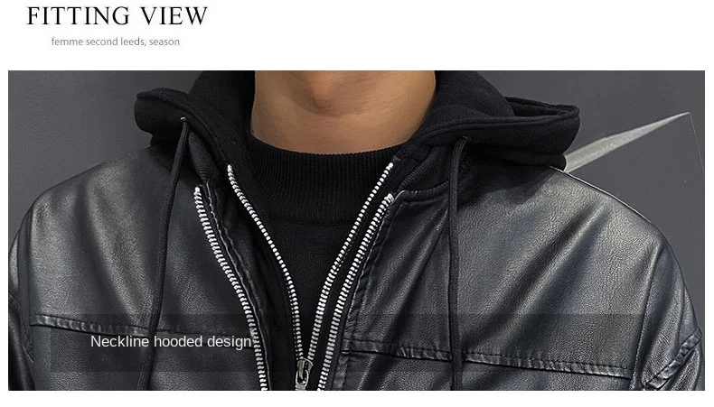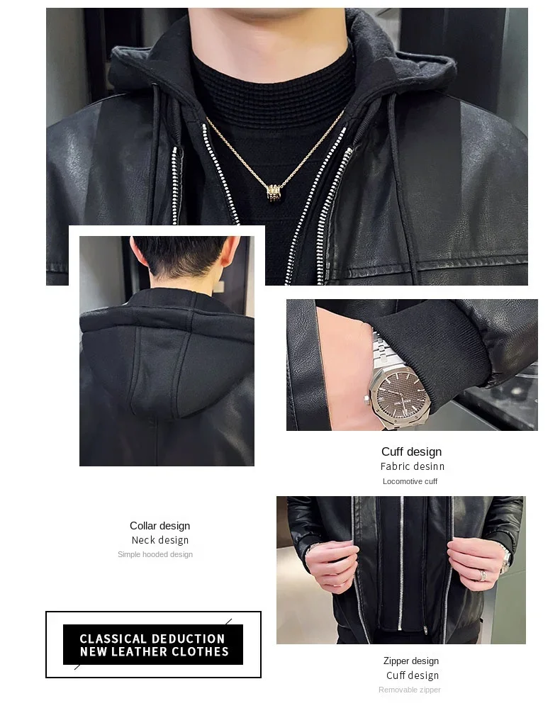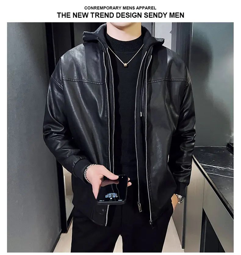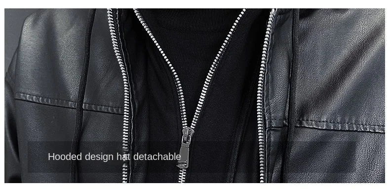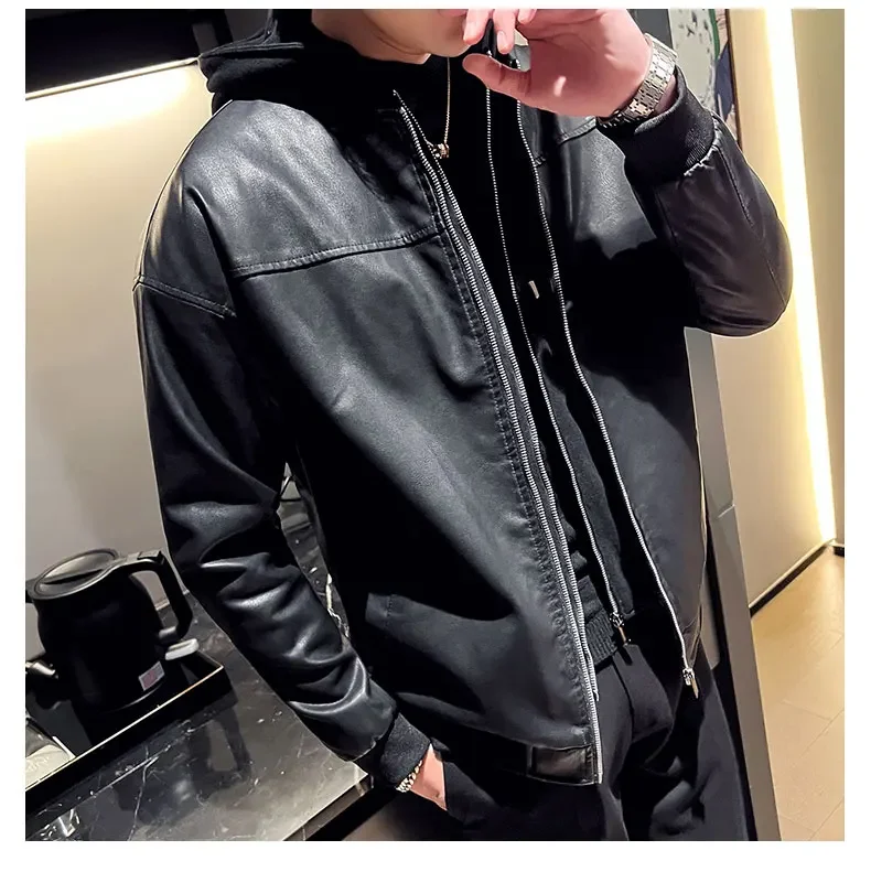 Double-layer Thicken Warm PU Jacket Top Men Loose Windproof Waterproof Hooded Outerwear Spring Fall Male Motorcycle Leather Coat