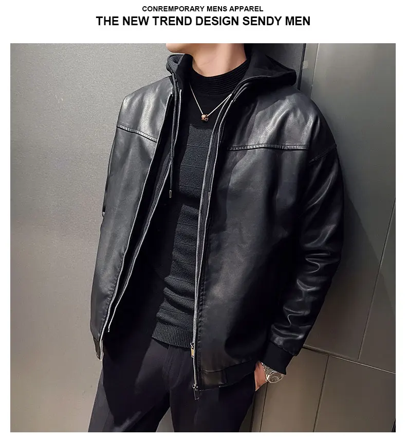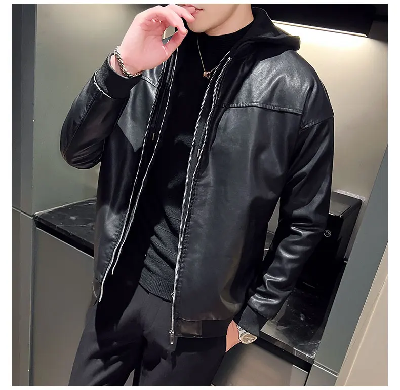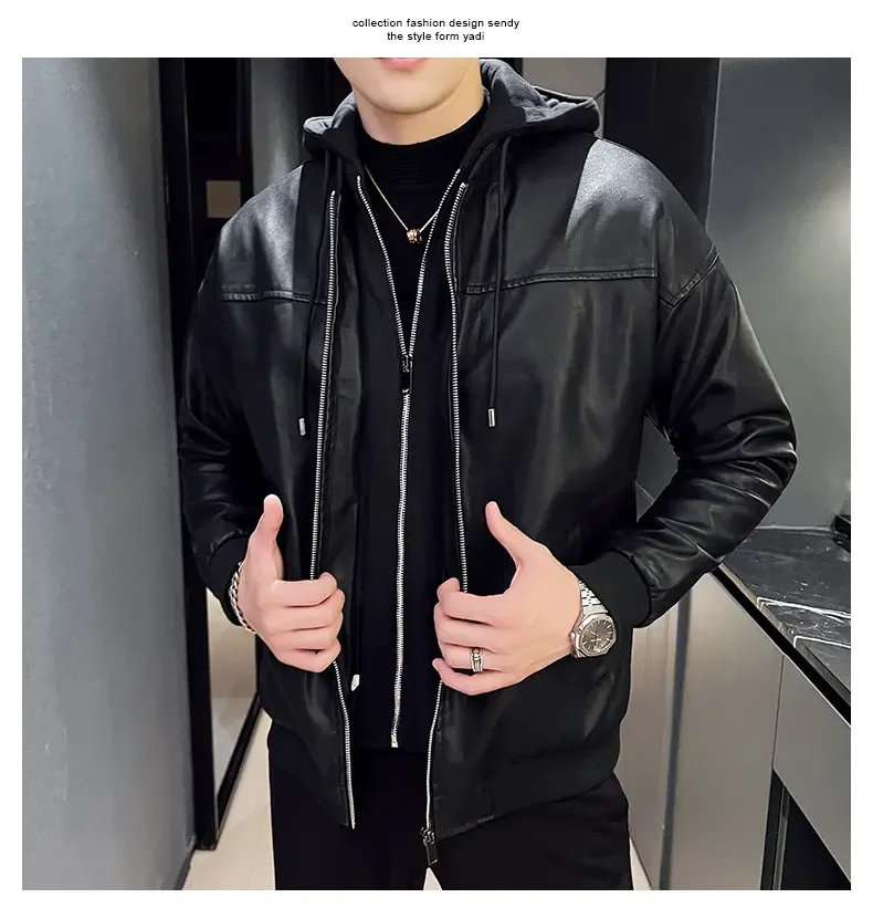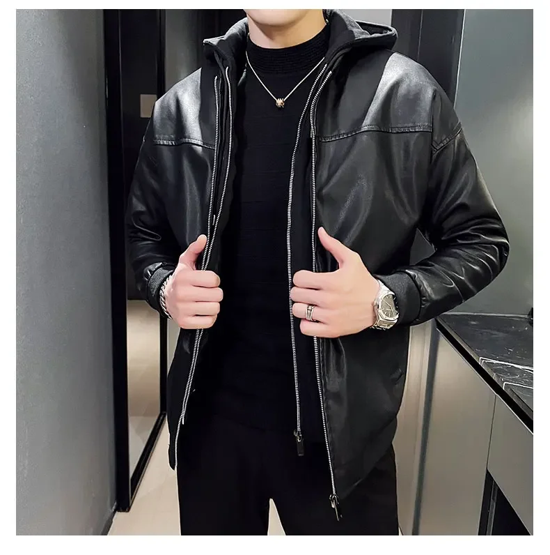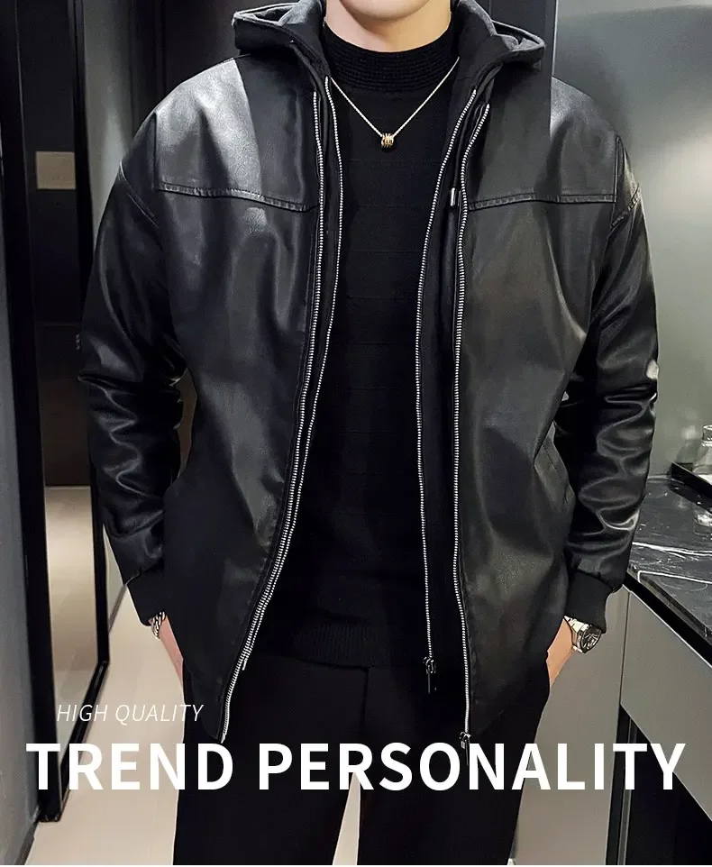 Double-layer Thicken Warm PU Jacket Top Men Loose Windproof Waterproof Hooded Outerwear Spring Fall Male Motorcycle Leather Coat