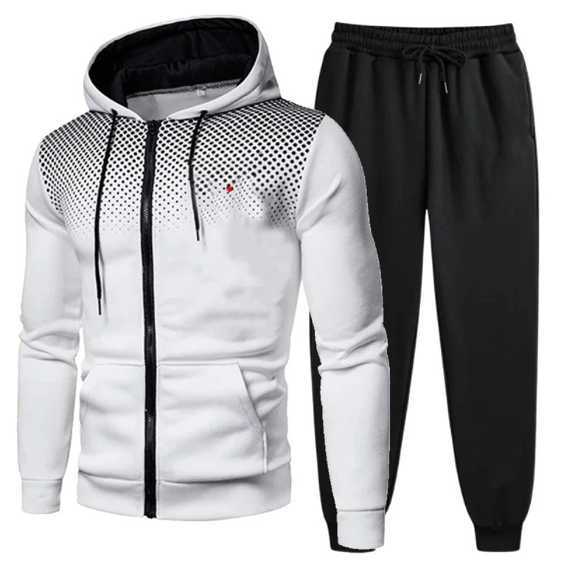 Men's Jacket Set Black Red White Blue Gray Printed Logo Hoodie Zipper Sweatshirt Sportswear for Outdoor Fitness Gym Casual Wear