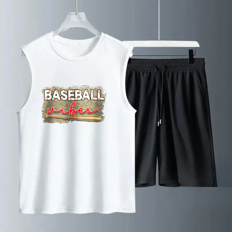 Men's vest suit Summer sleeveless printed Baseball Urban tank Tops + shorts men's sets training suit set men Quick drying man