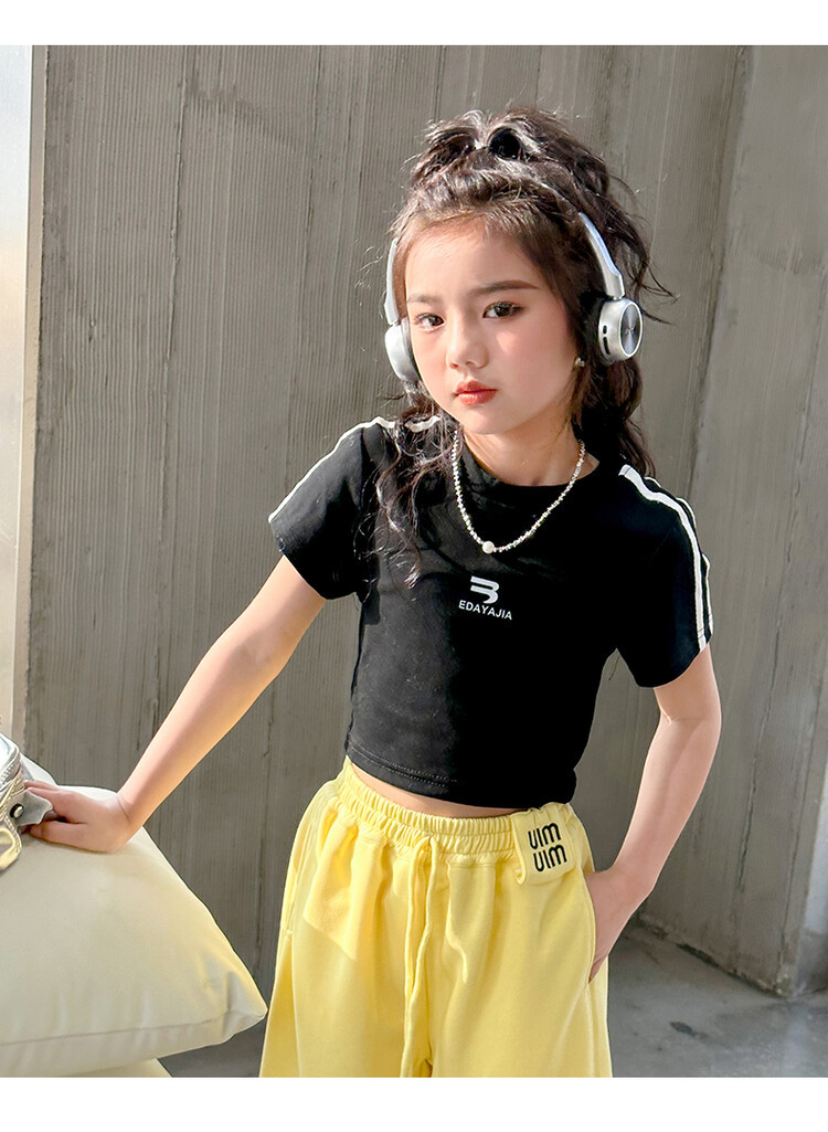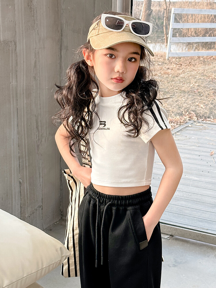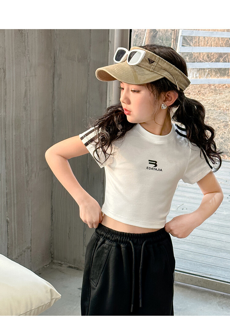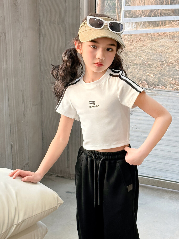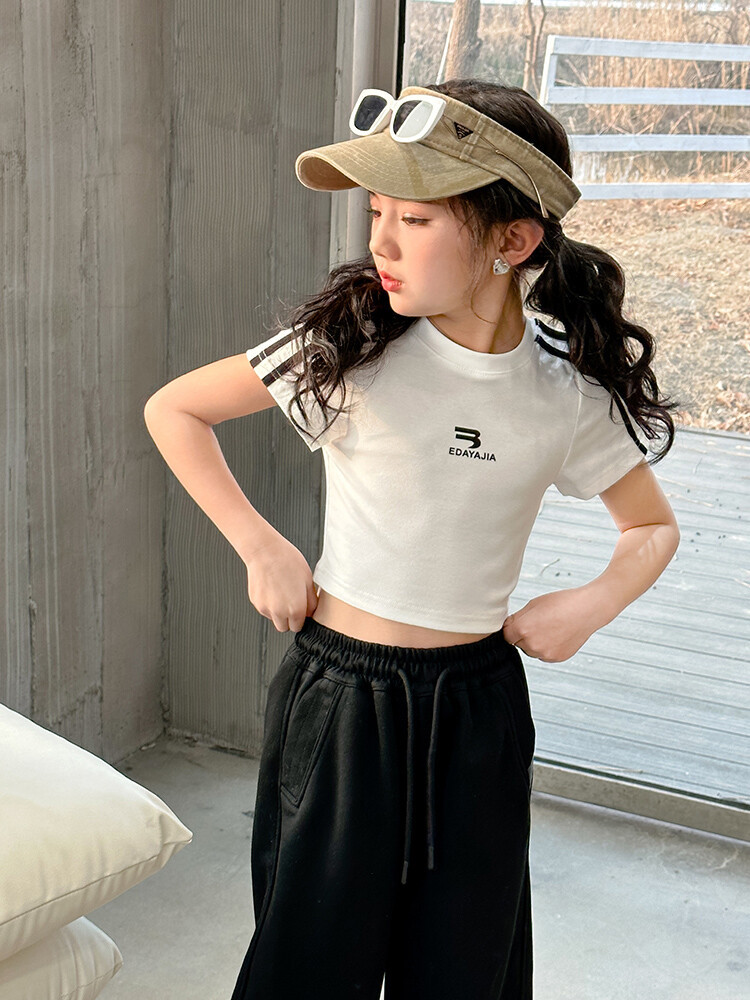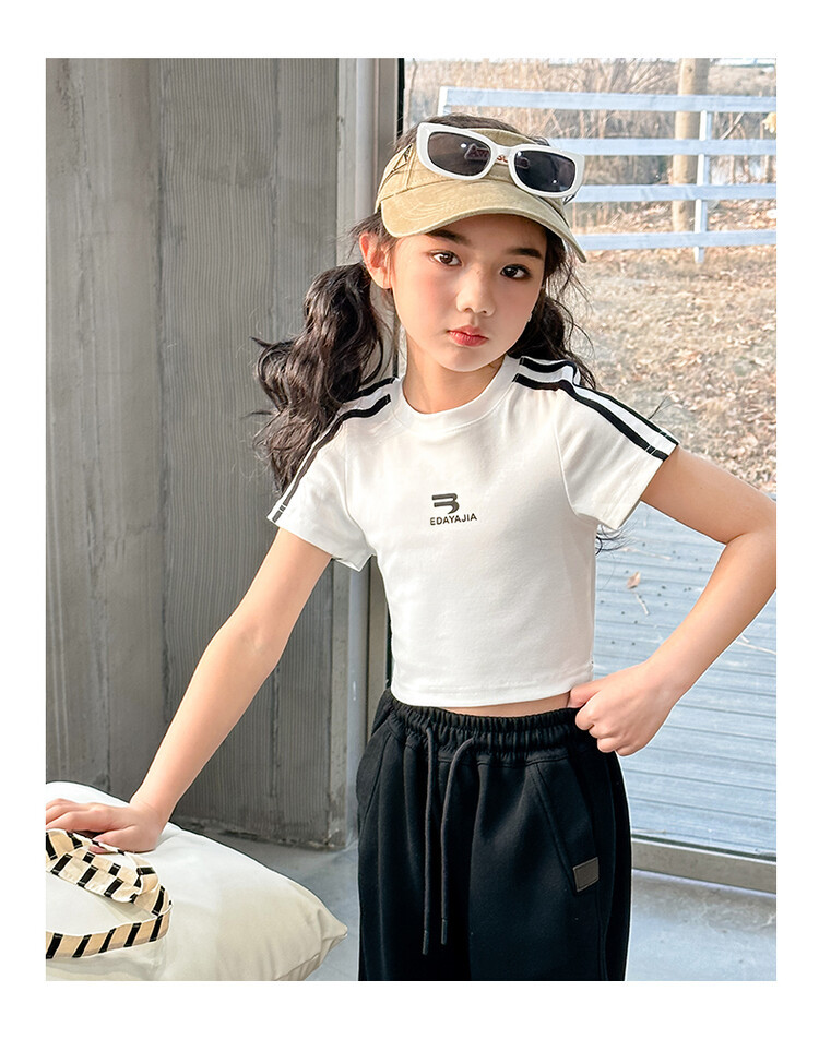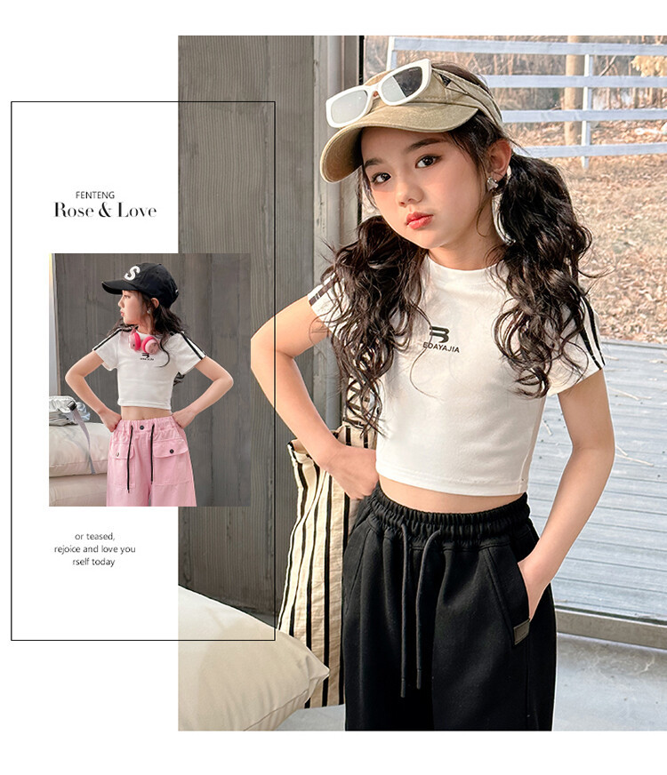 New Summer Black white 95% Cotton American Hot Girls short t-shirt korean streetwear kids top tee clothes vetement enfant fille