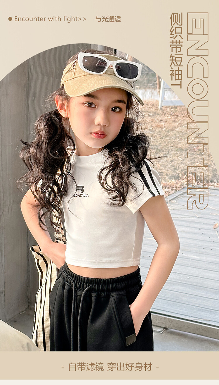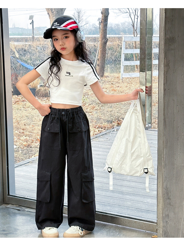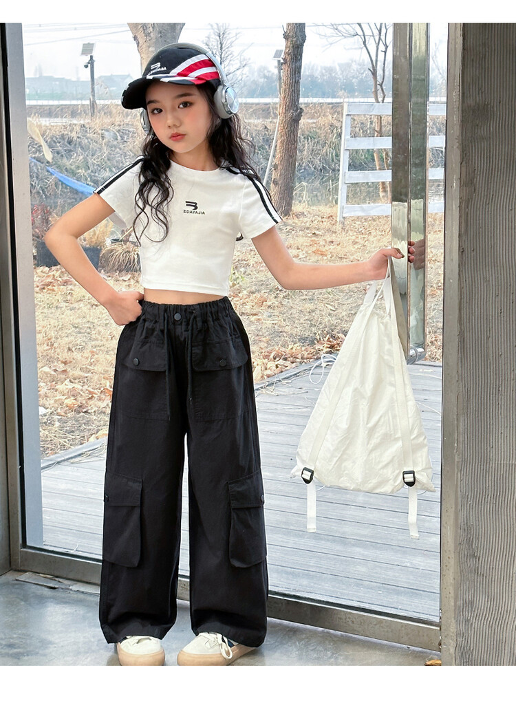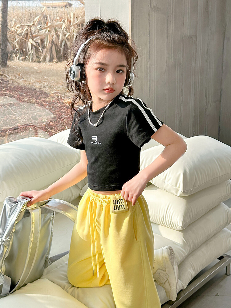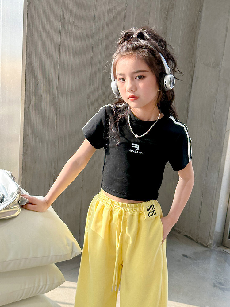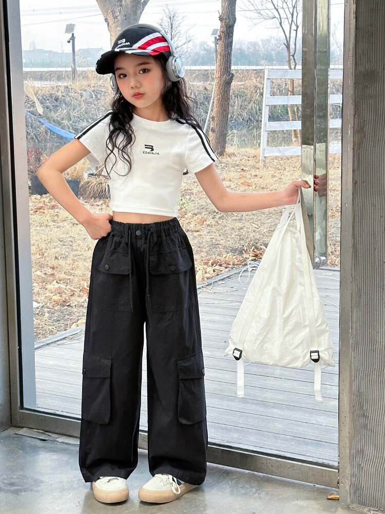 New Summer Black white 95% Cotton American Hot Girls short t-shirt korean streetwear kids top tee clothes vetement enfant fille