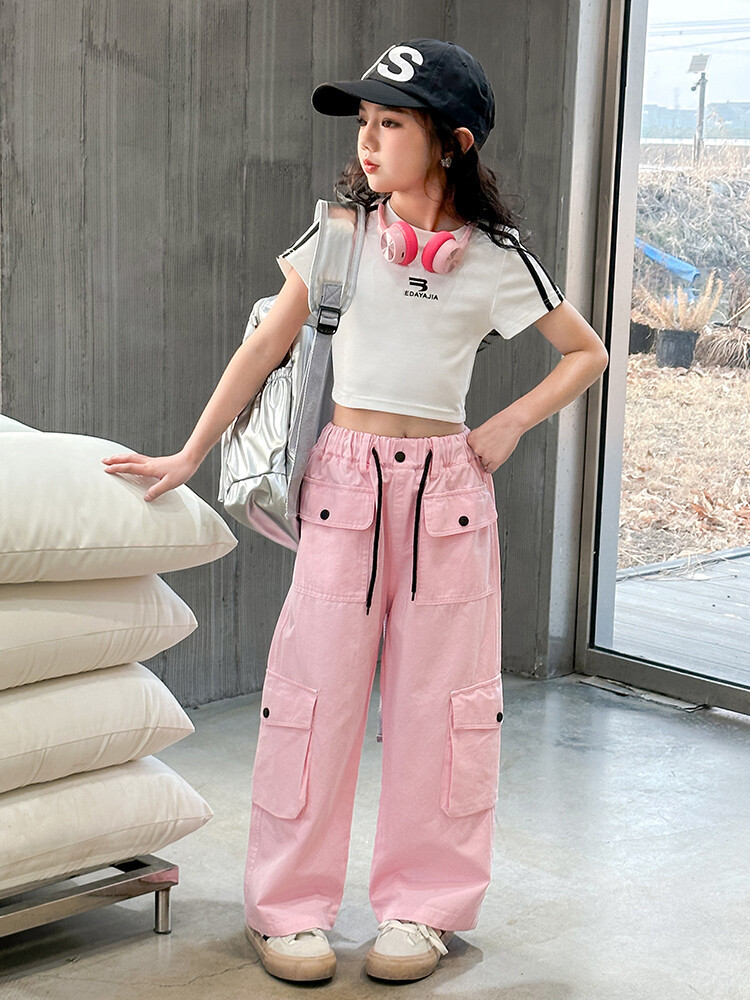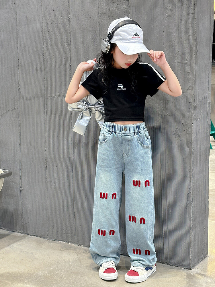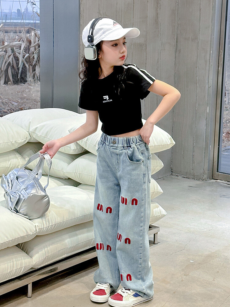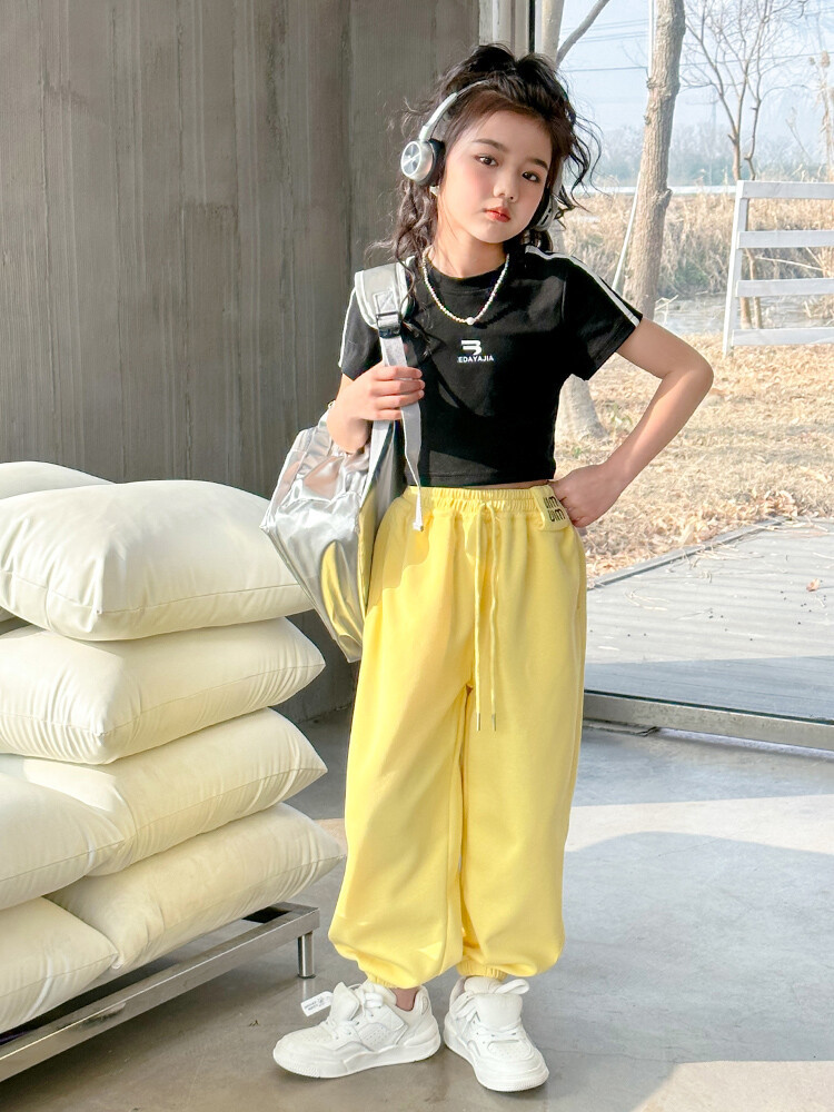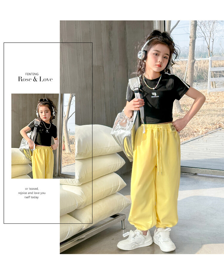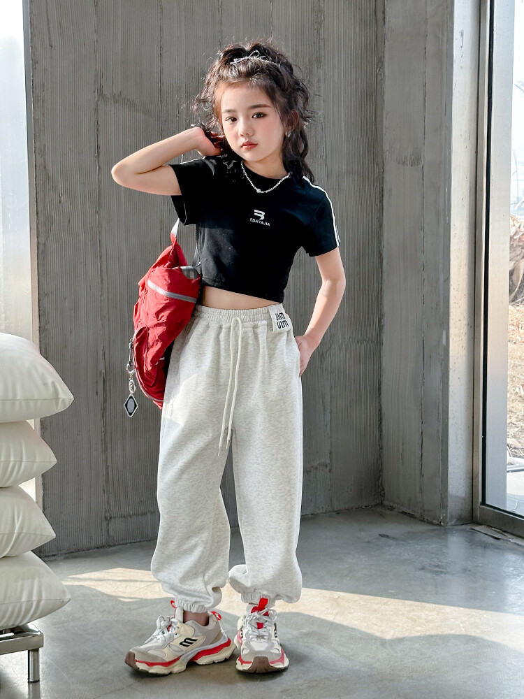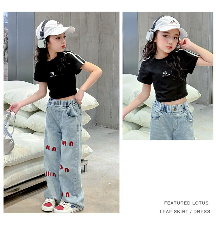 New Summer Black white 95% Cotton American Hot Girls short t-shirt korean streetwear kids top tee clothes vetement enfant fille