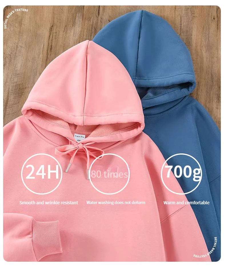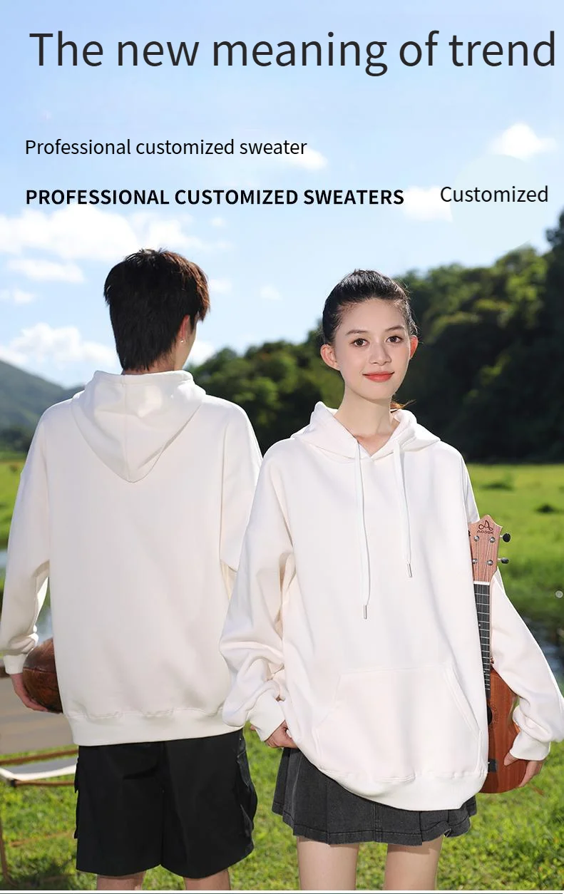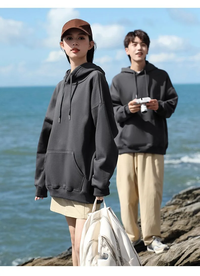 New Winter Custom Graphic Men's Plush Hoodies Drop Shoulder Thick Women's Sweatshirts Personalized Print Casual Cotton Pullovers
