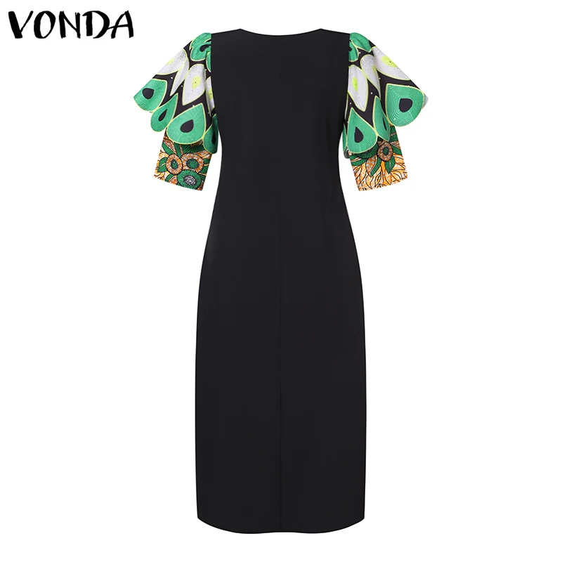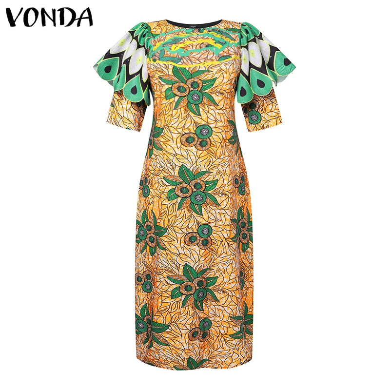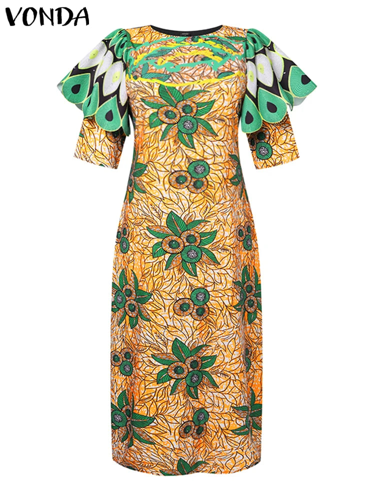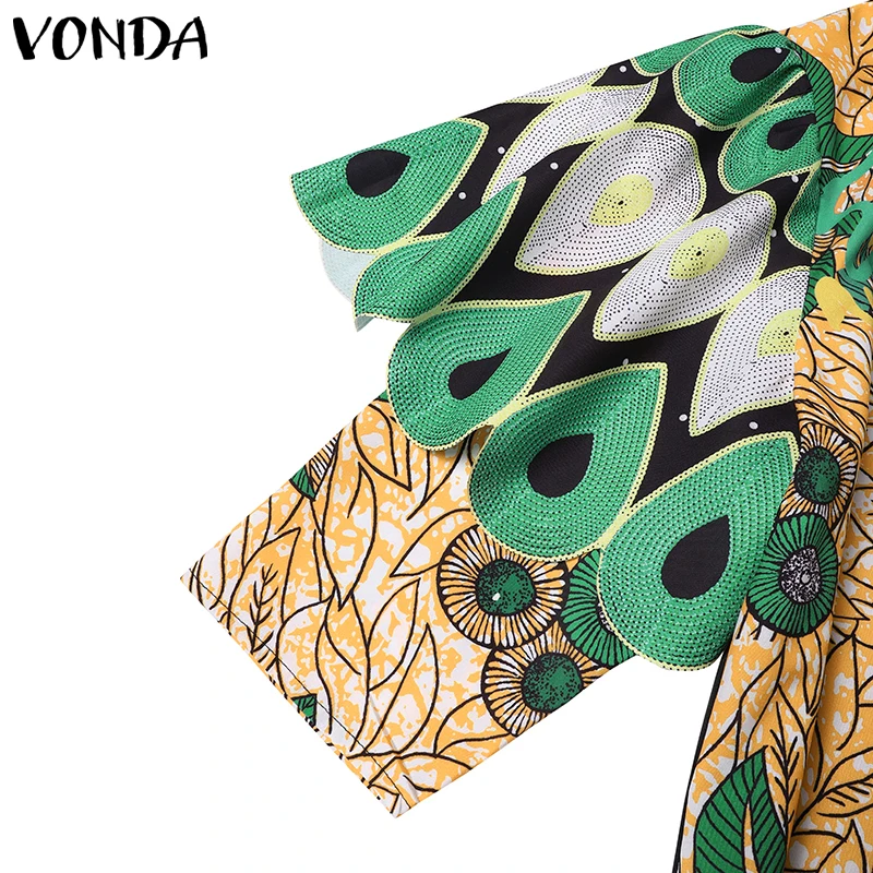 Plus Size 5XL VONDA Women Bohemian Printing Maxi Dress Vintage Fare Sleeve Elegant Evening Party Sundress 2024 Casual Loose Robe