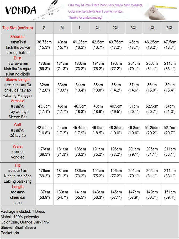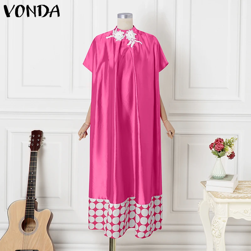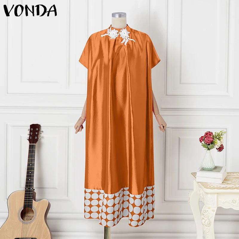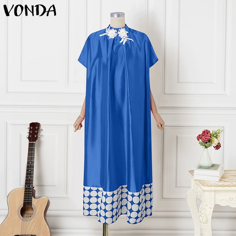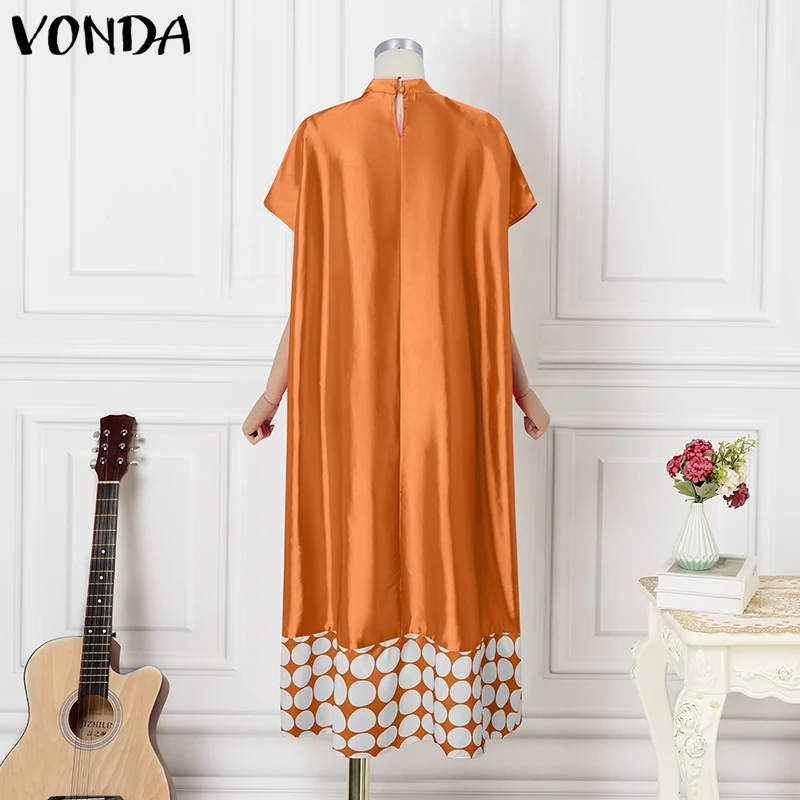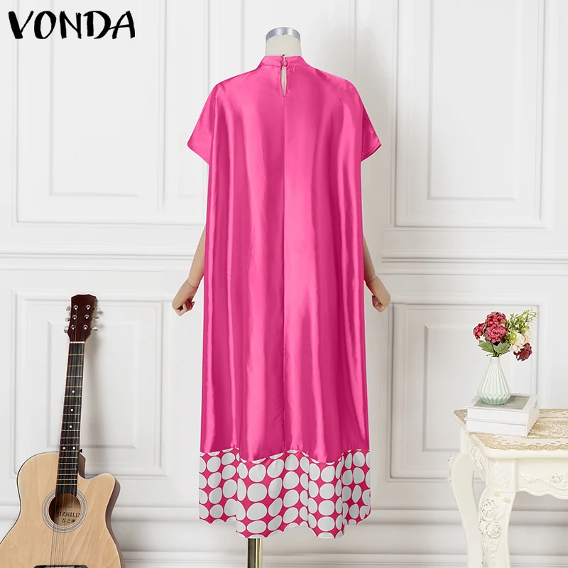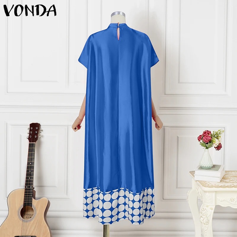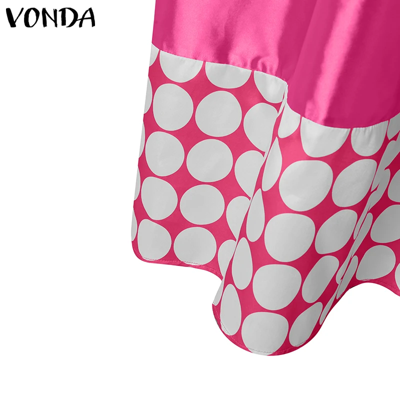 Plus Size Dresses 5XL VONDA Women Elegant Polka Dot Patchwork Sundress 2025 Summer Party Vestidos Casual Bat-wing Sleeve Robe