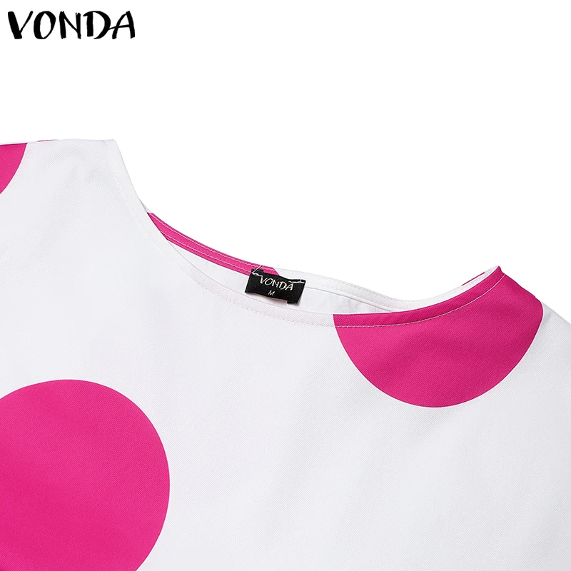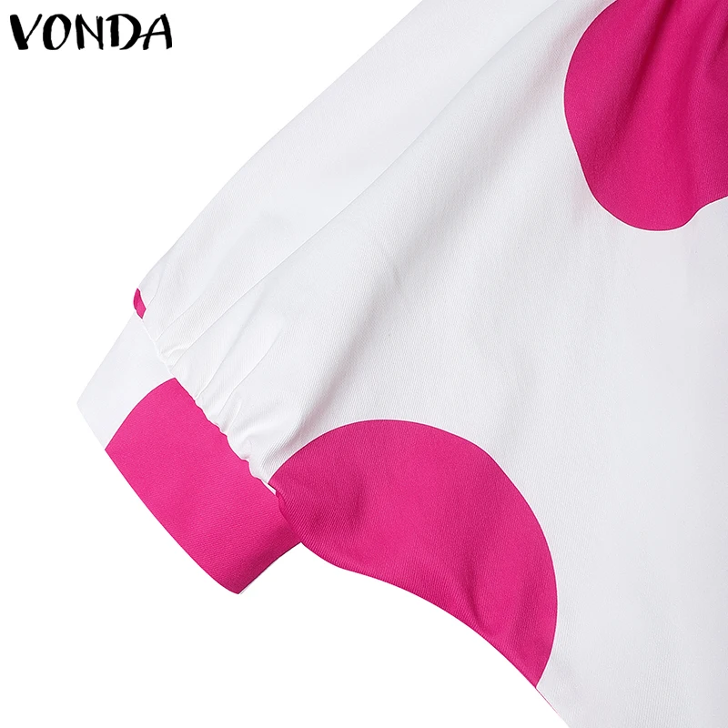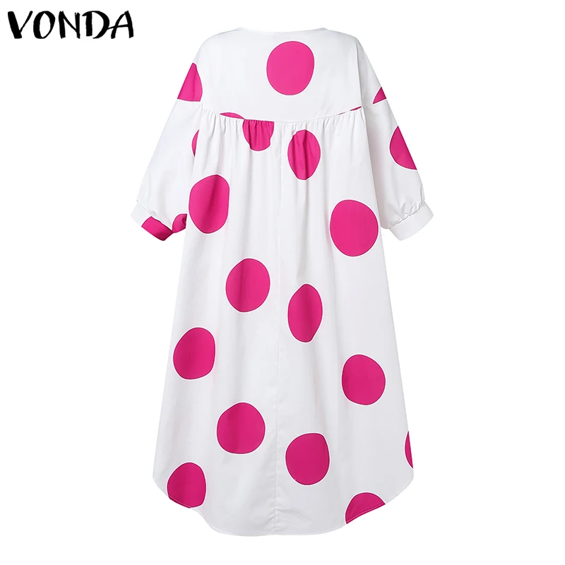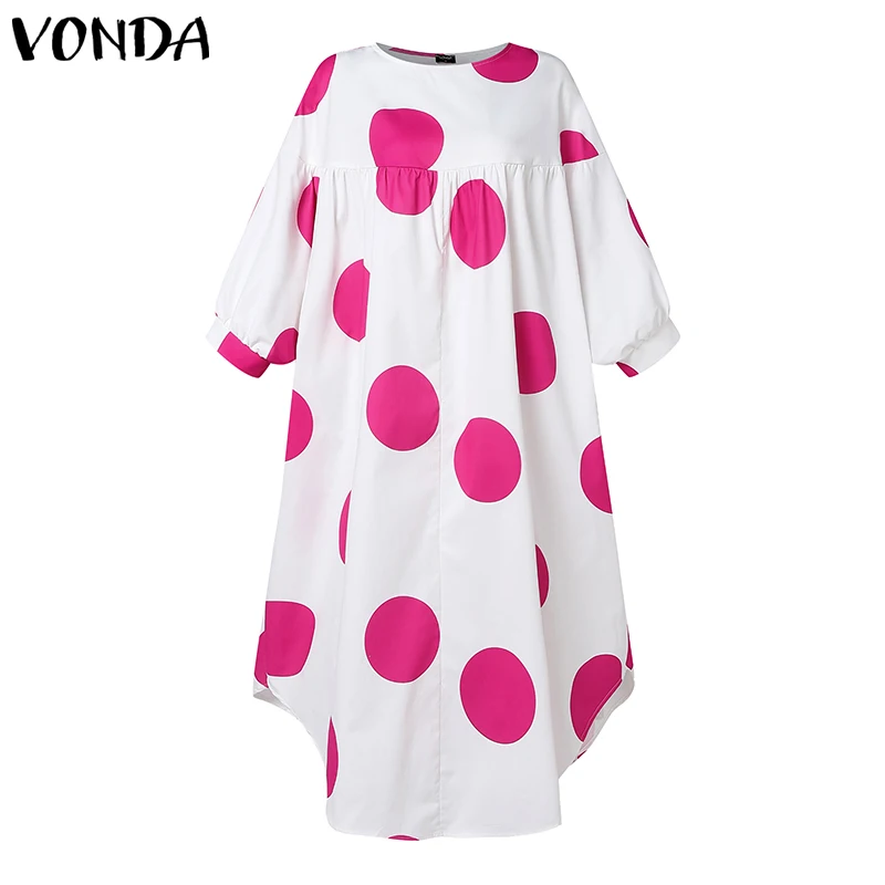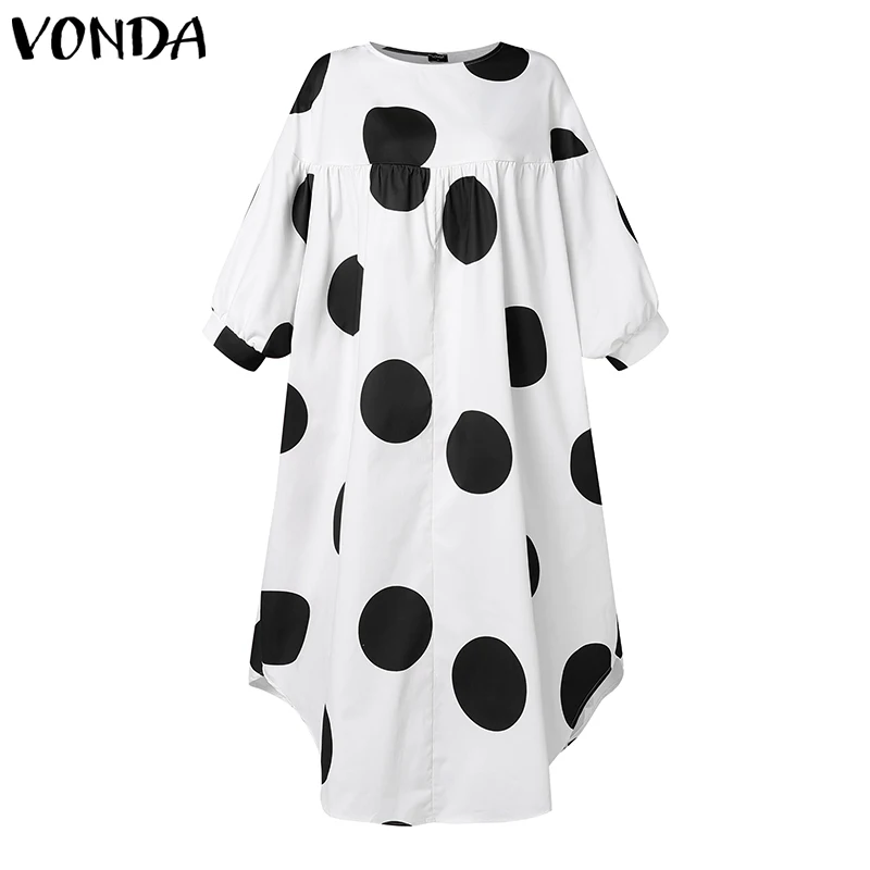 Plus Size VONDA Women Dot Printed Dress Bohemian Sundress 2025 Three Quarter Summer Party Vestidos Bat-wing Sleeve Casual Robe