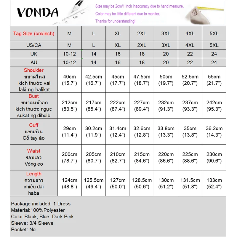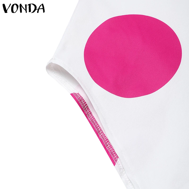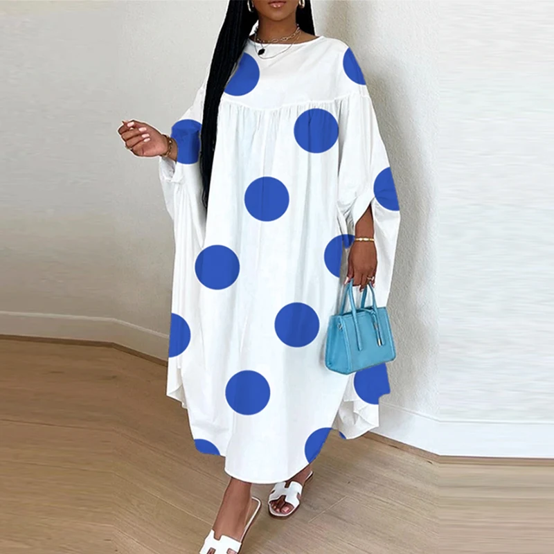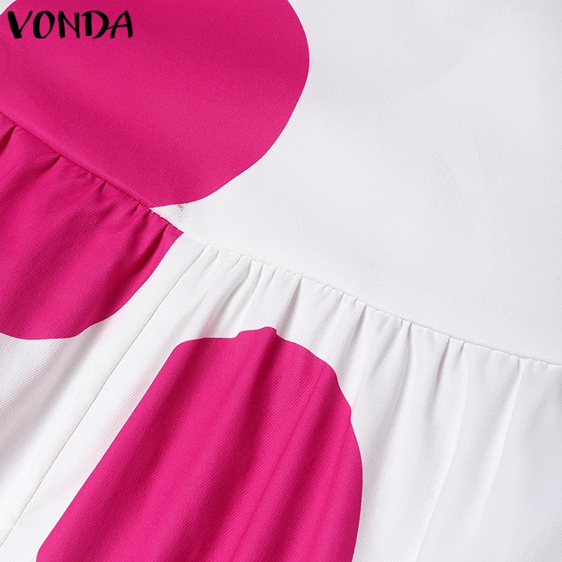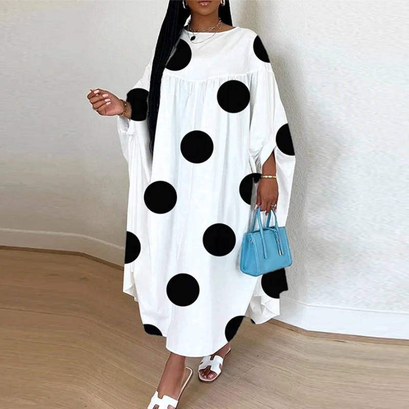 Plus Size VONDA Women Dot Printed Dress Bohemian Sundress 2025 Three Quarter Summer Party Vestidos Bat-wing Sleeve Casual Robe