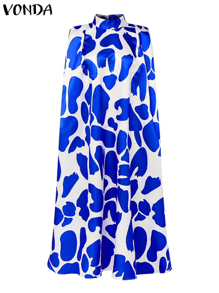 Plus Size VONDA Women Elegant Printing Maxi Long Dress 2024 Casual Stand Collar Robes Bohemian Bat-wing Sleeve Party Vestidos