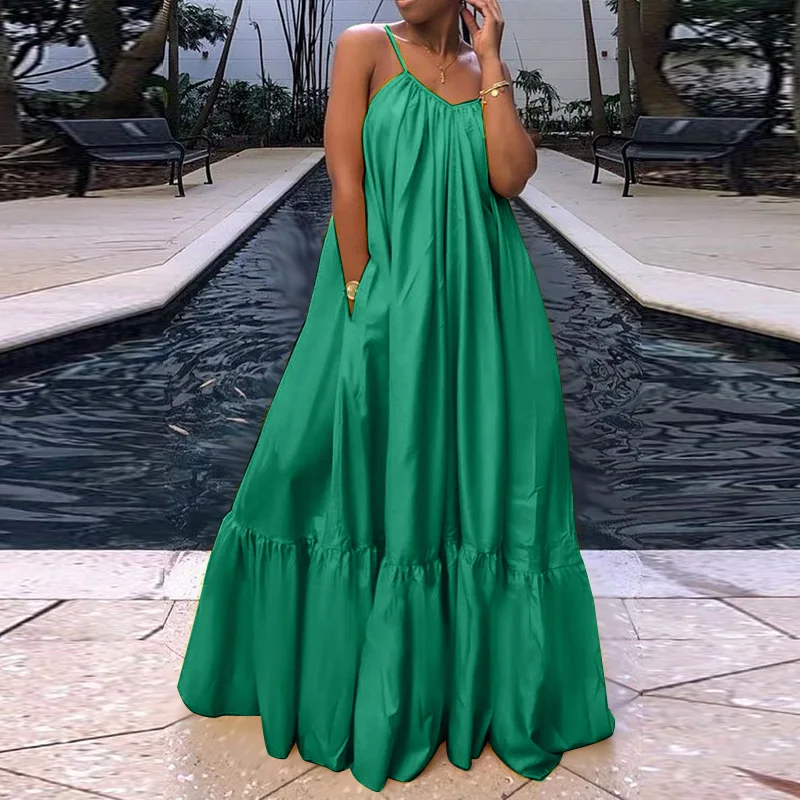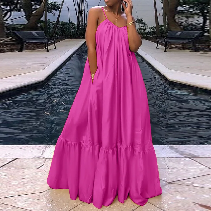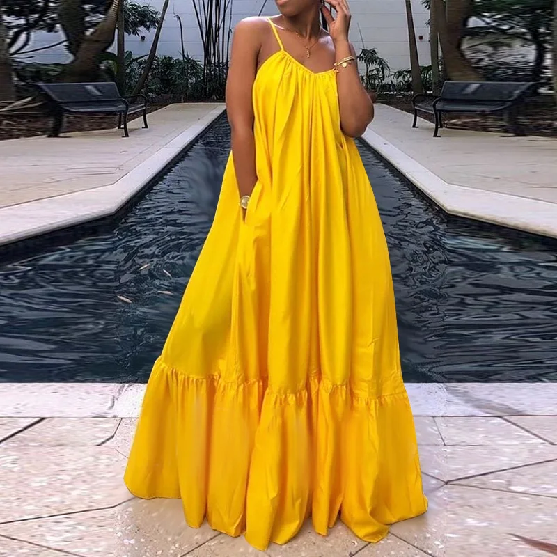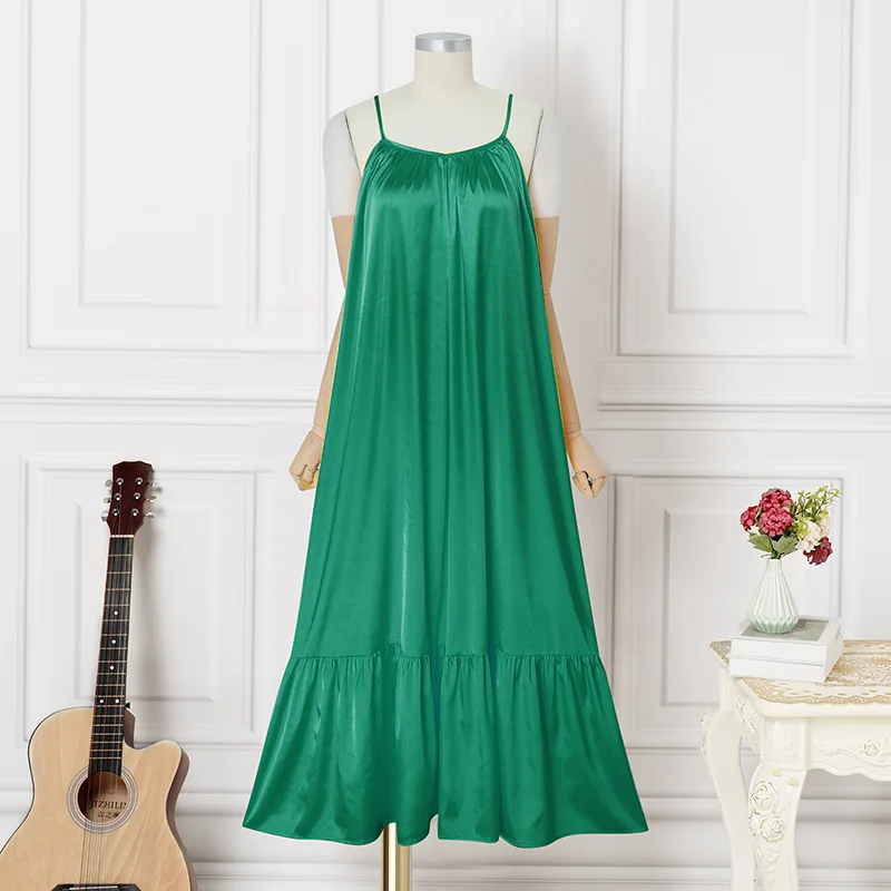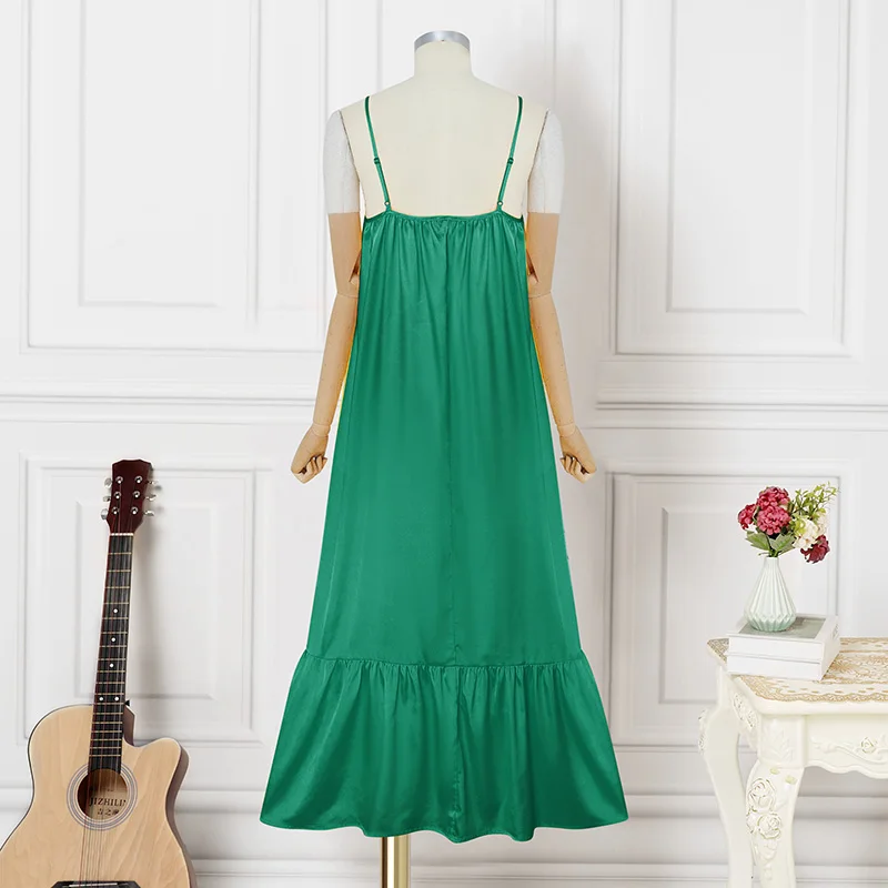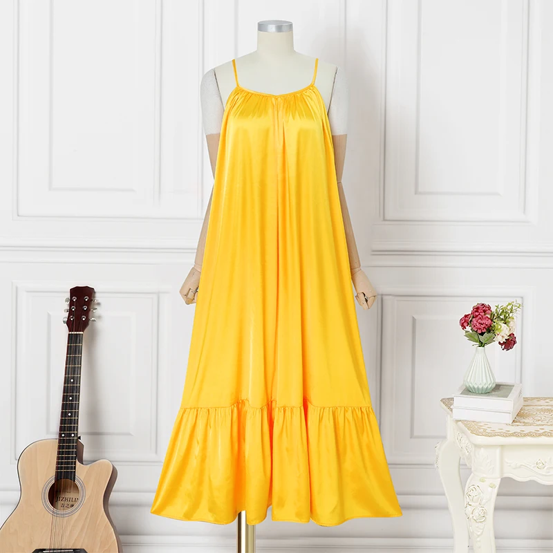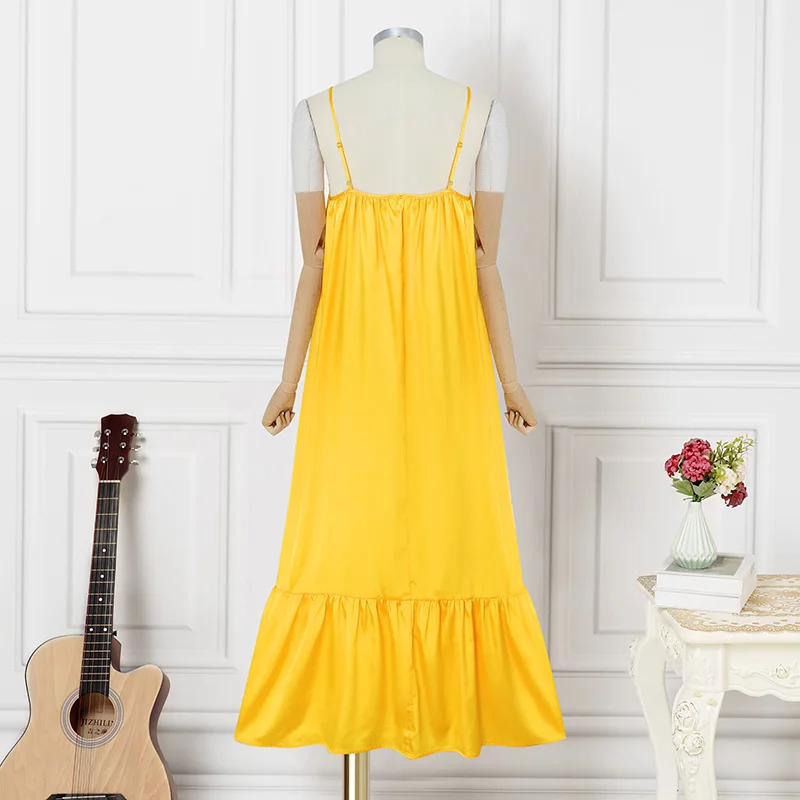 Plus Size Women's Summer Dress Spaghetti Strap Sexy Maxi Sundress 2025 Satin Party Beach Vestido Ruffled Robe 5XL