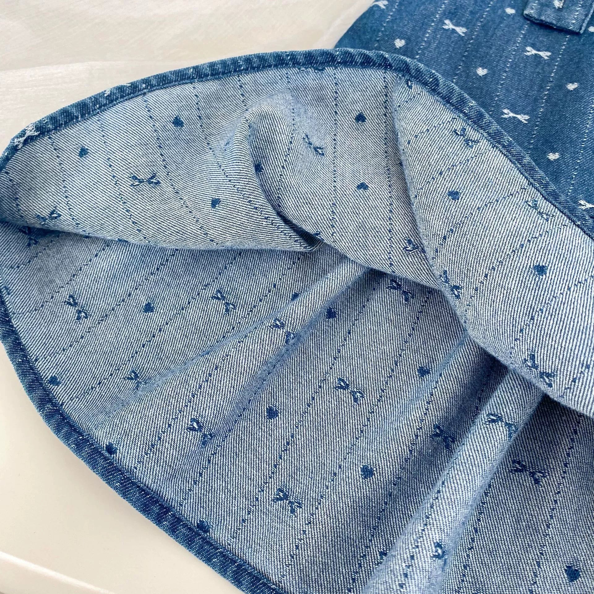 Dress your little one in this adorable two-piece set perfect for spring and autumn outings. The long-sleeve beige top features a charming cherry pattern that adds a sweet touch, while the denim sleeveless dress is easy to layer and comfy for all-day play. Together, they create a playful and stylish look that keeps your baby cozy and cute through cool, breezy days.