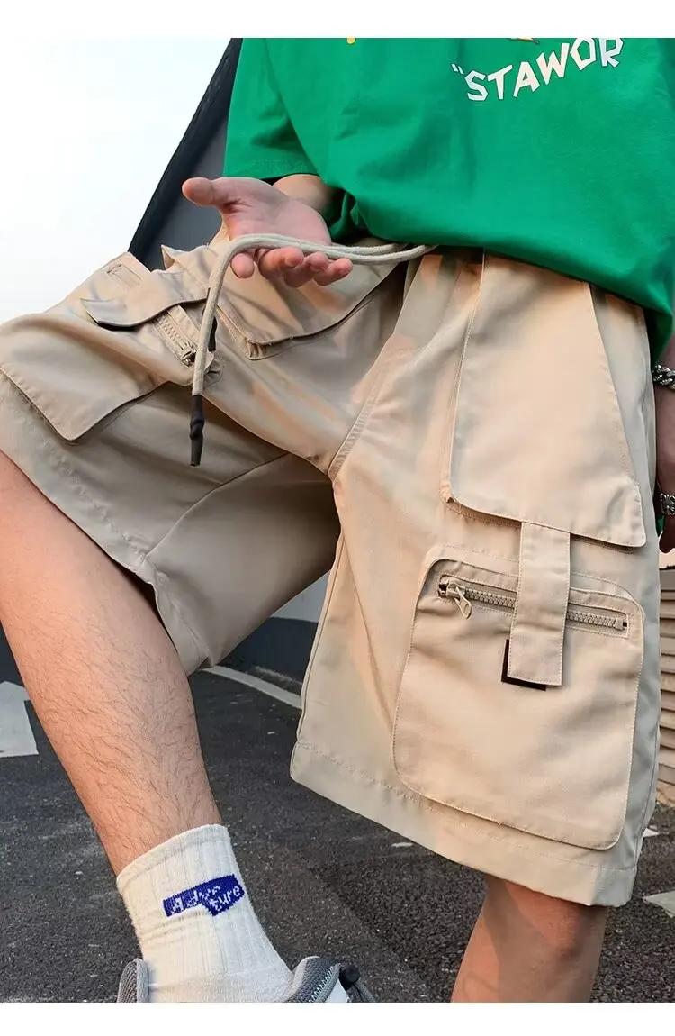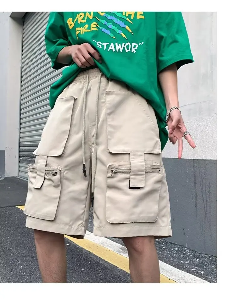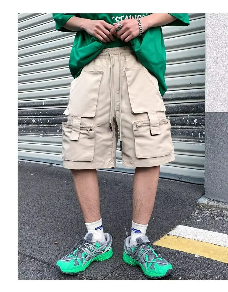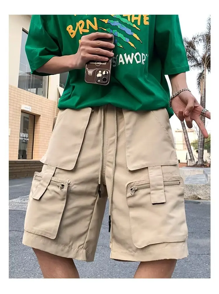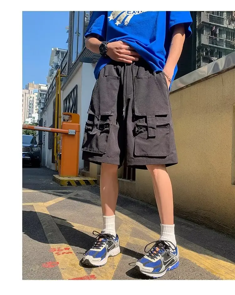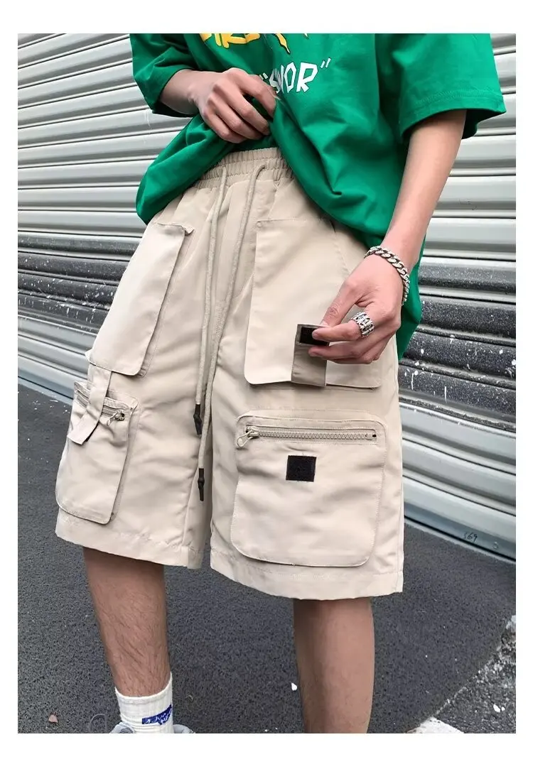 Summer classic multi pocket retro workwear shorts thin, loose, oversized straight leg casual pants for boys