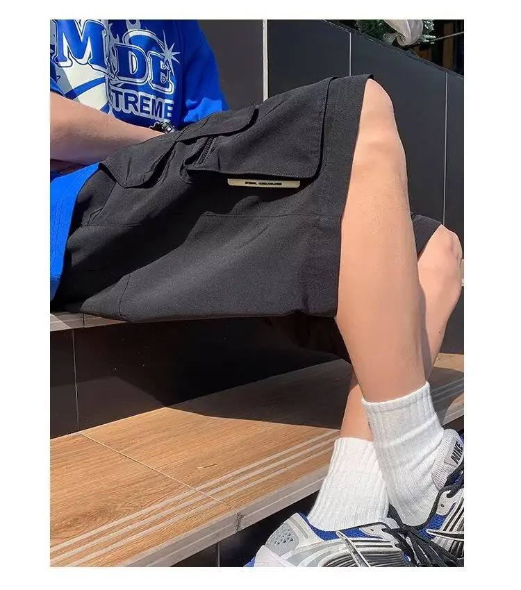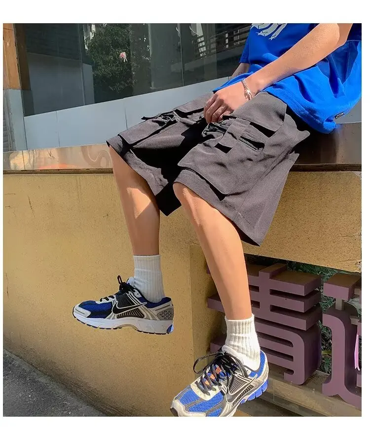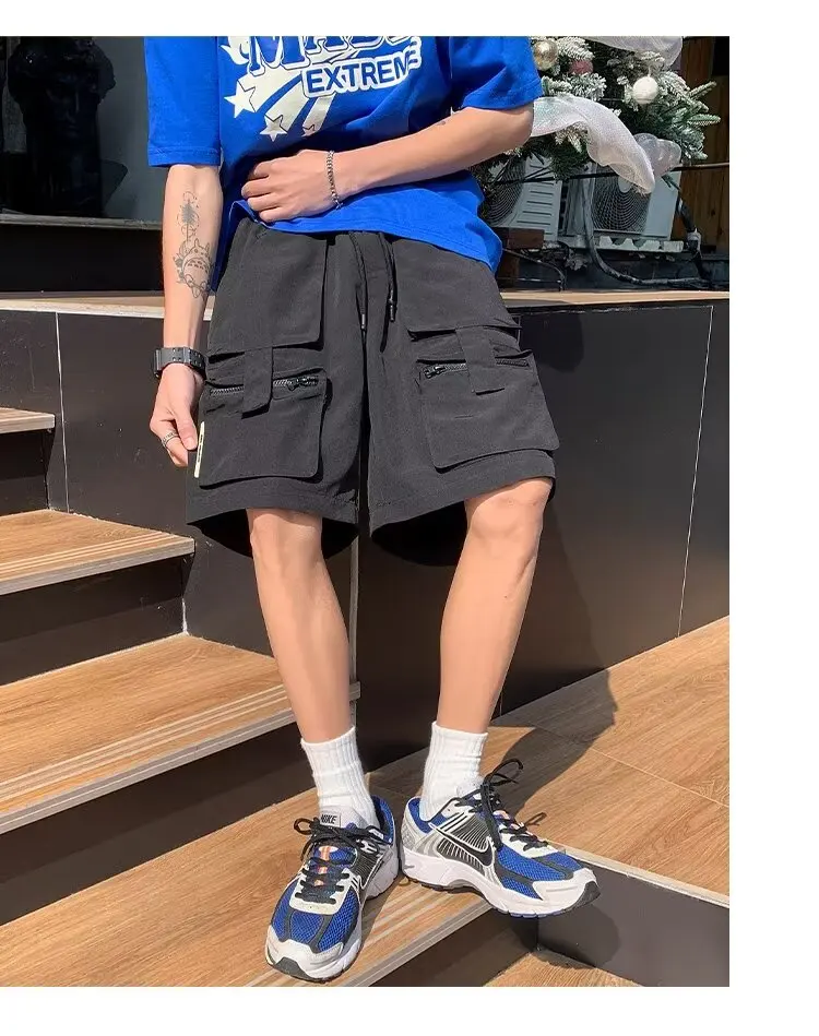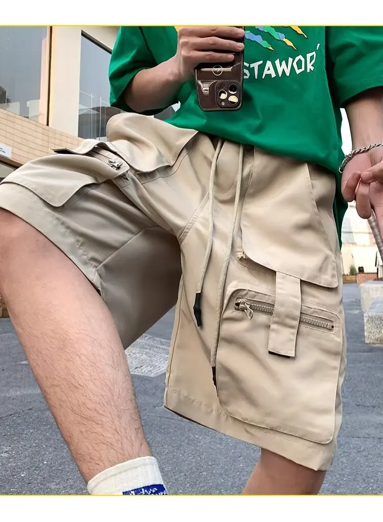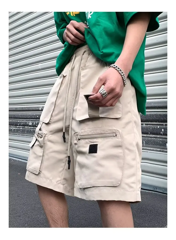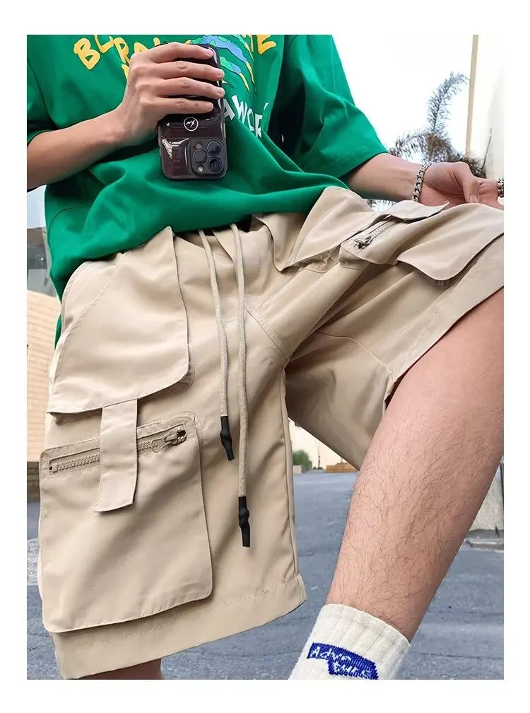 Summer classic multi pocket retro workwear shorts thin, loose, oversized straight leg casual pants for boys