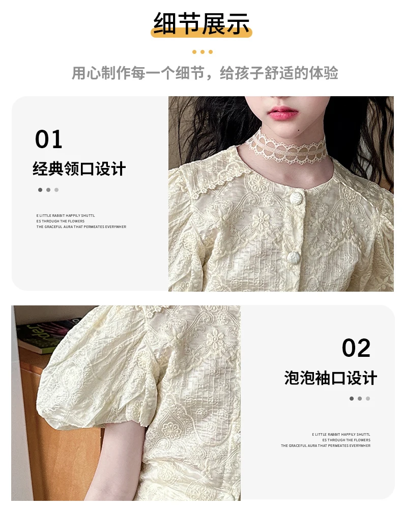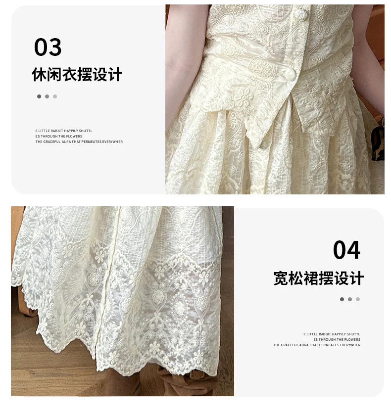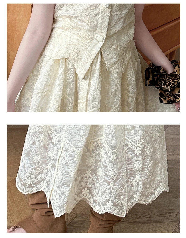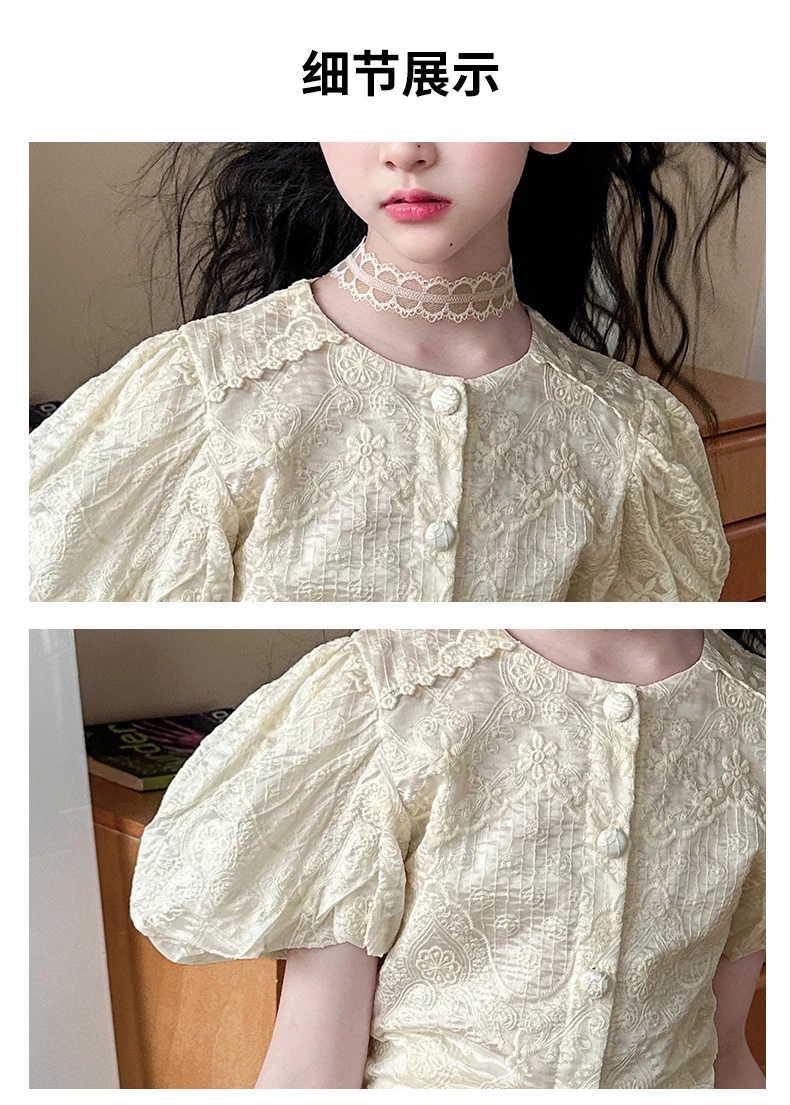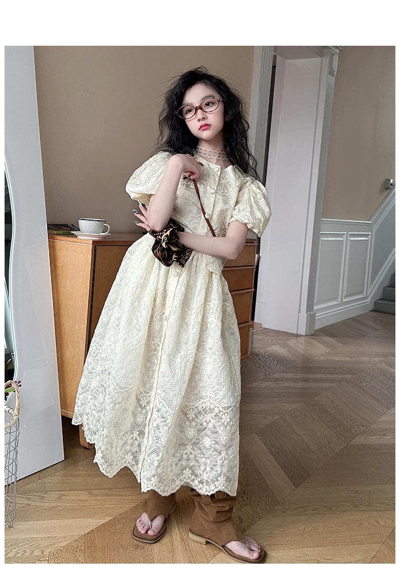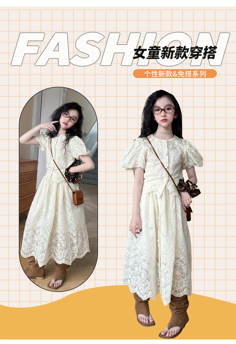 summer teen girl Embroidery dress set Bubble sleeve lace top+long skirt 2pcs junior kid suit child outfits vetement enfant fille