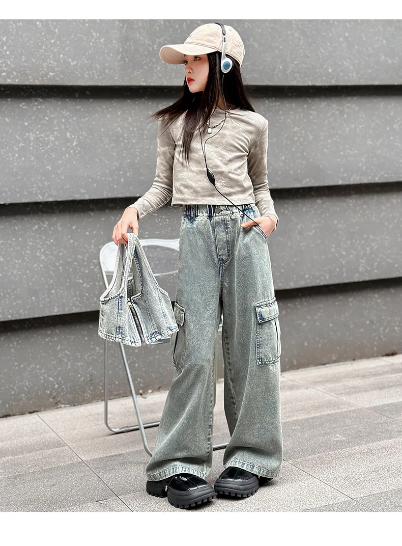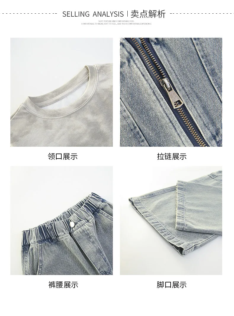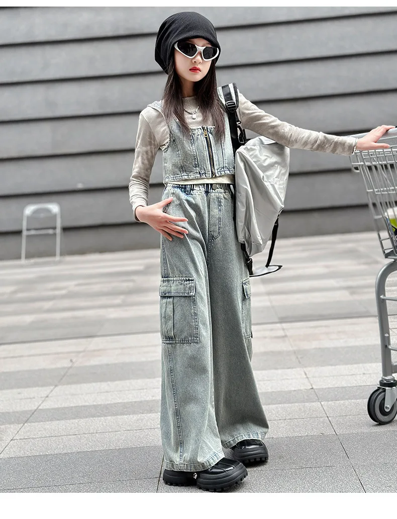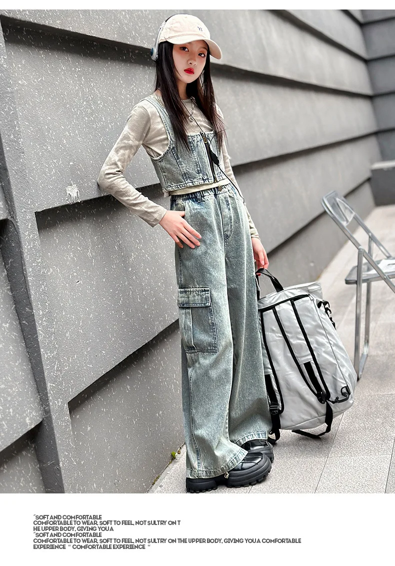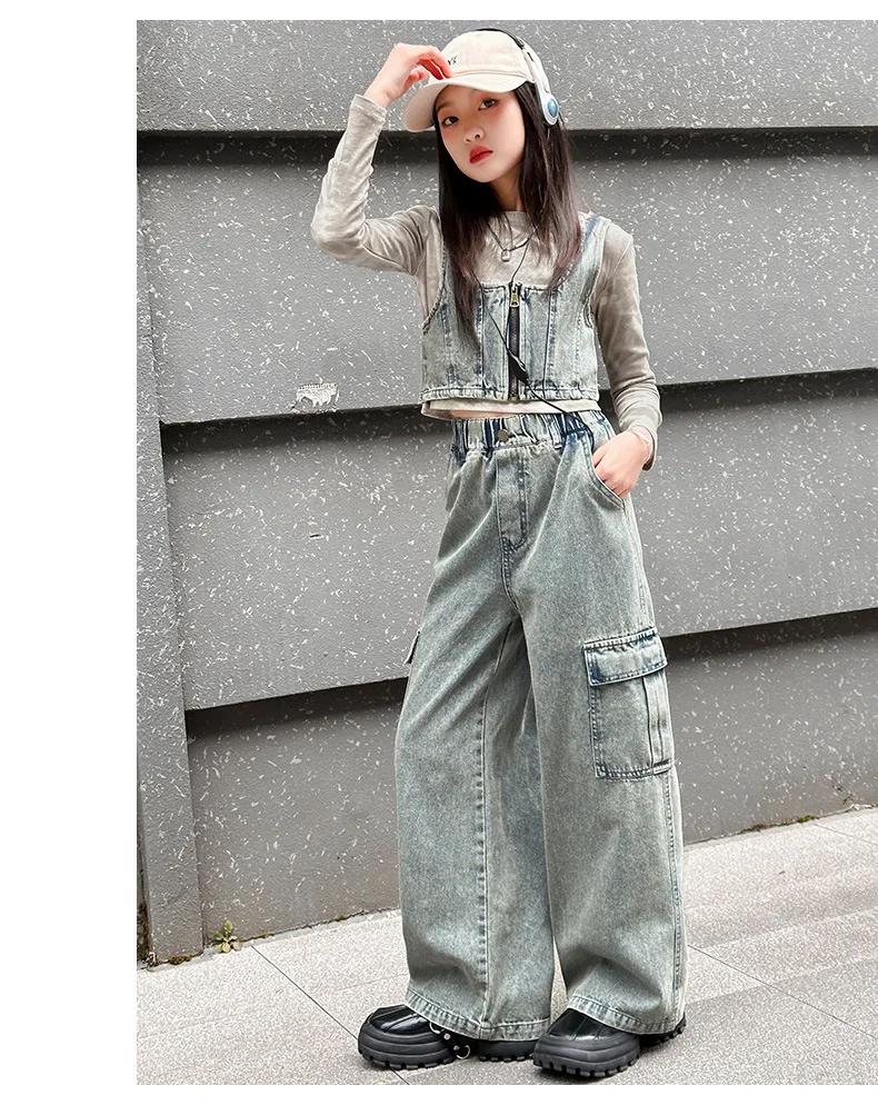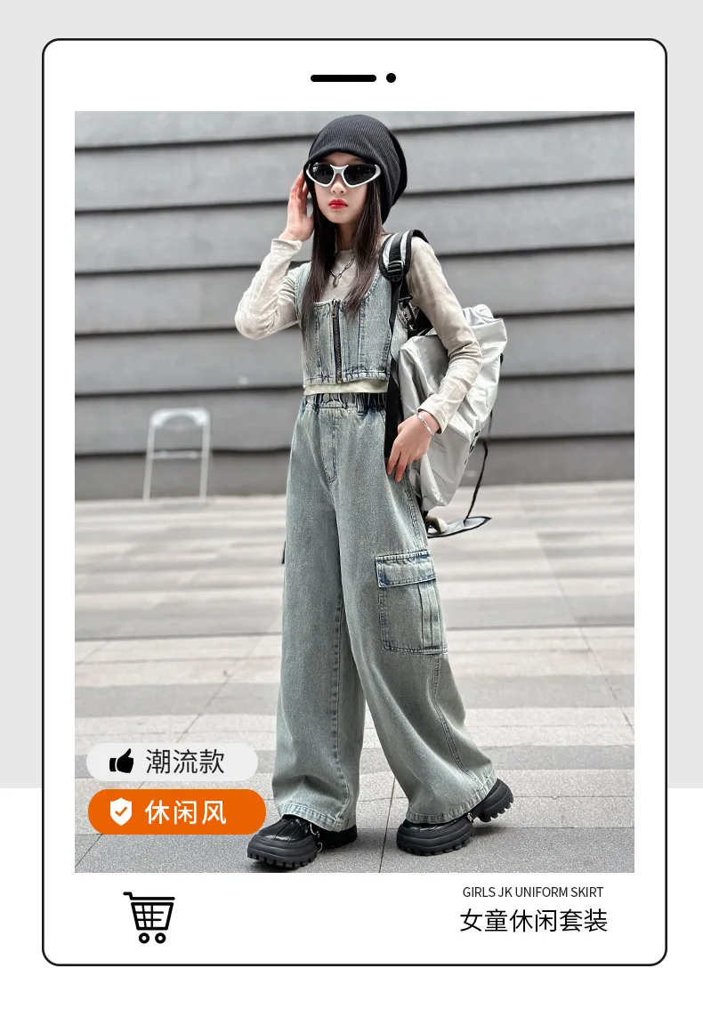 vetement enfant fille denim vest+top t shirt+cargo pants jeans three pcs kids girls clothes sets childer outfits clothing suit