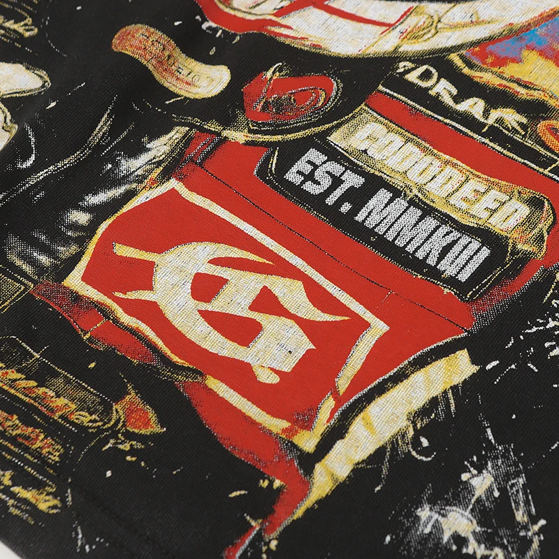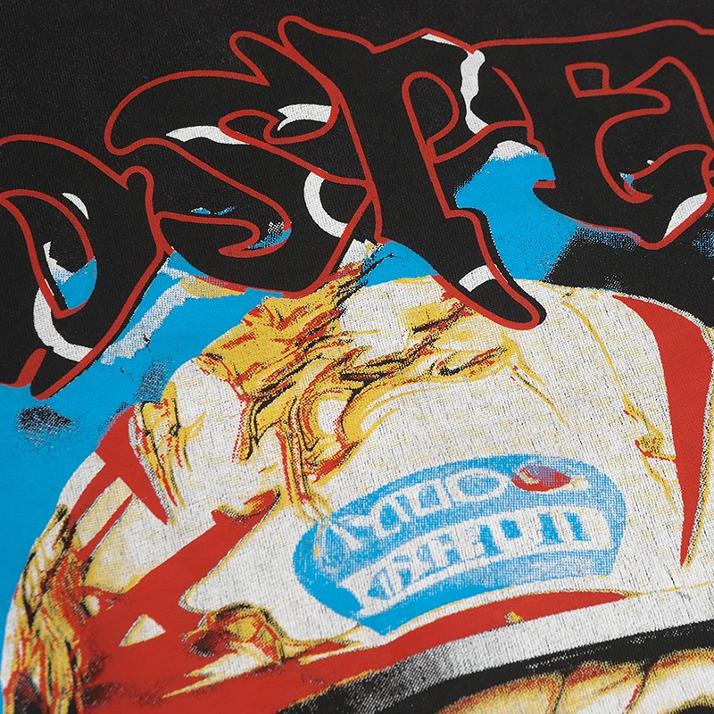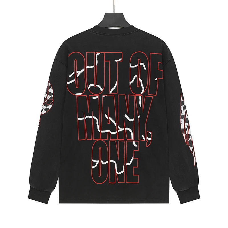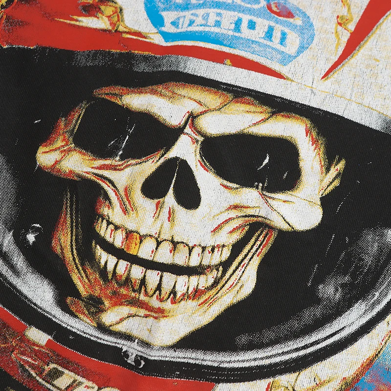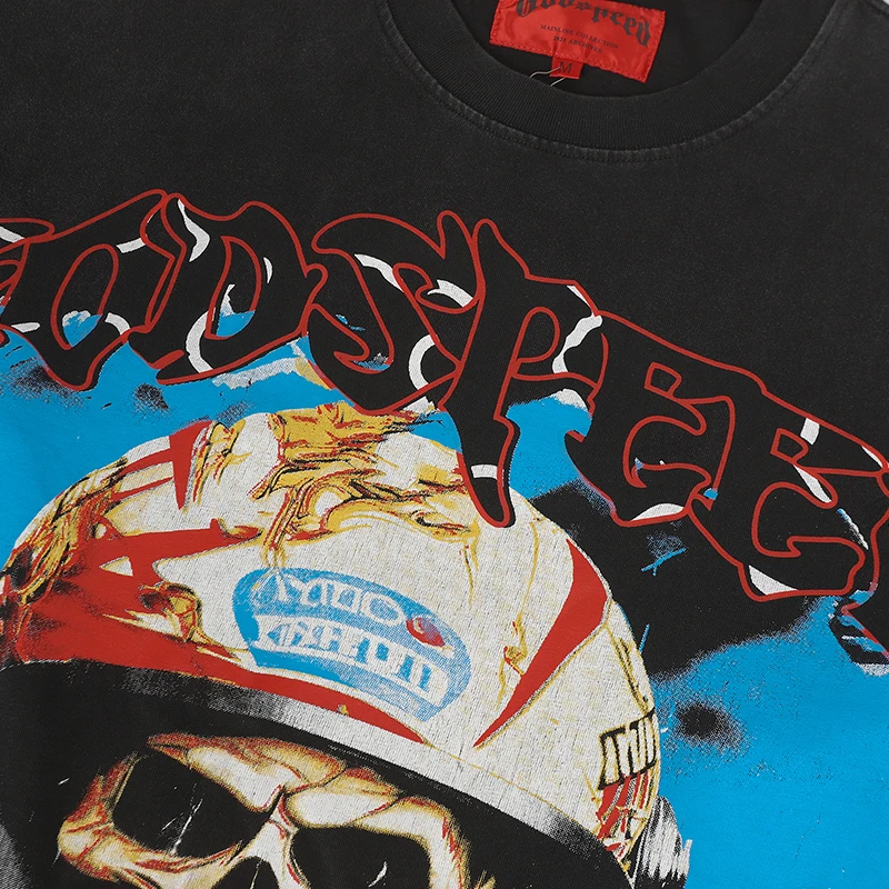 Vintage Washed Godspeed Long-sleeved T-shirts Rock Roll Tee Skull Racing Driver Print Loose Streetwear Tops Men Women