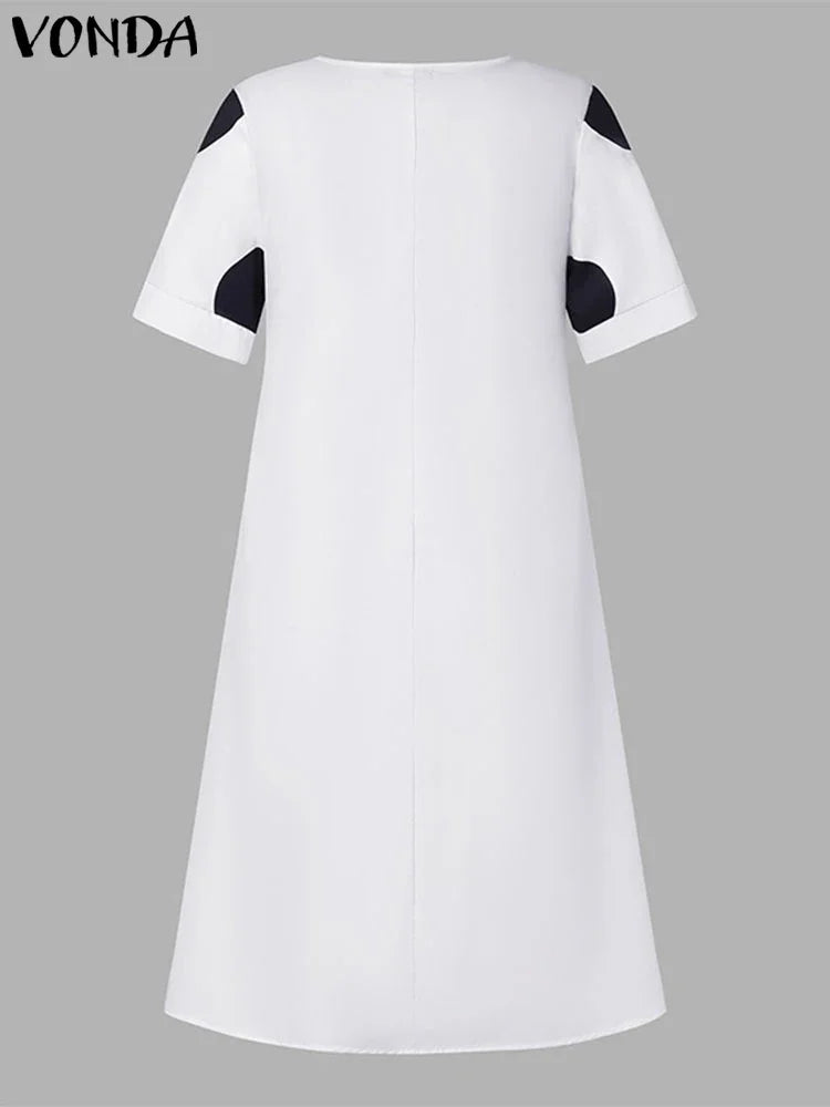 VONDA Plus Size 5XL Women Dress 2025 Summer Bohemian Polka Dot Maxi Long Dress V Neck Party Sundress Vestido Beach Robe Elegant